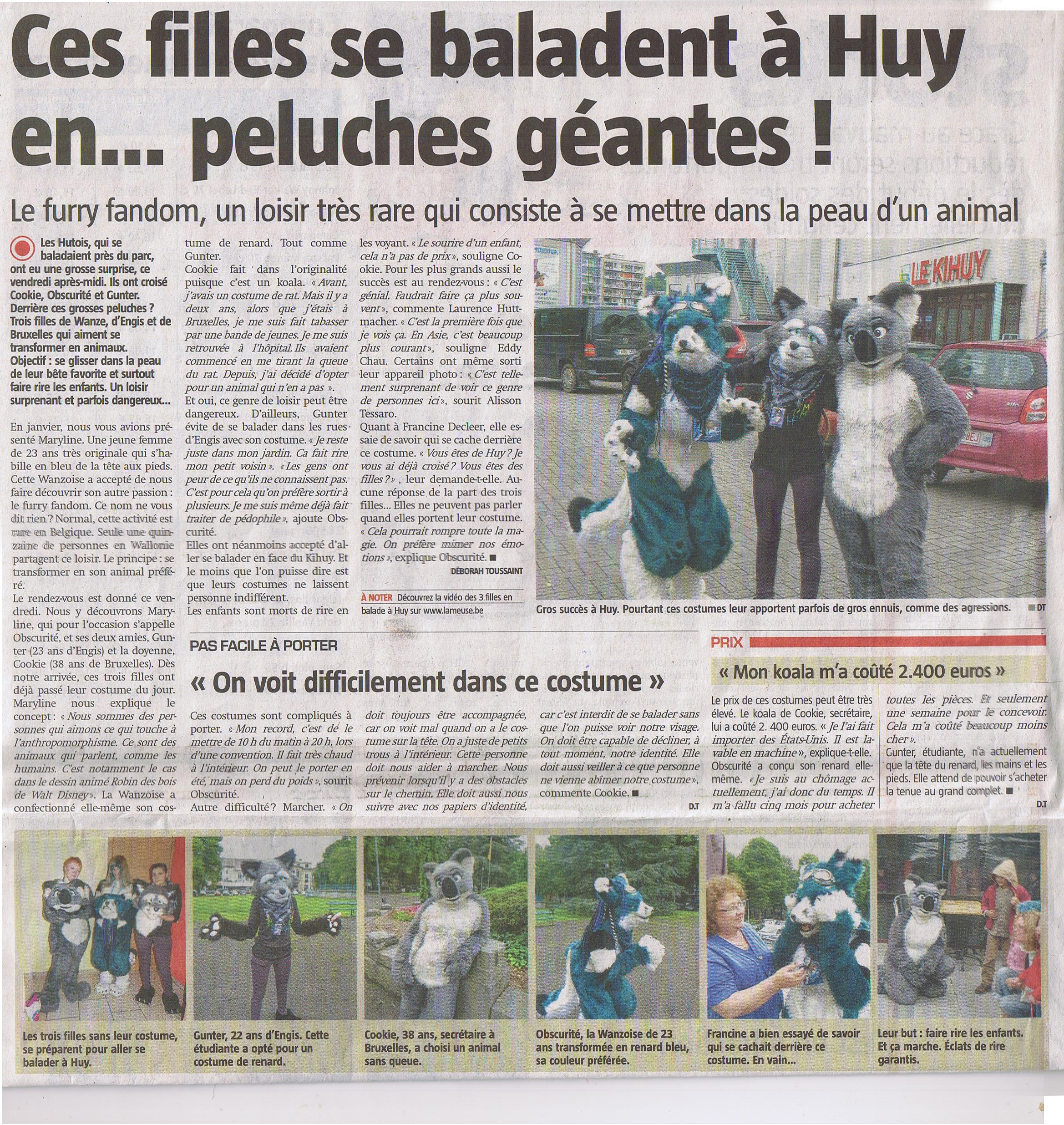 Re: Recherche fursuit pour reportage :La Meuse Huy Waremme