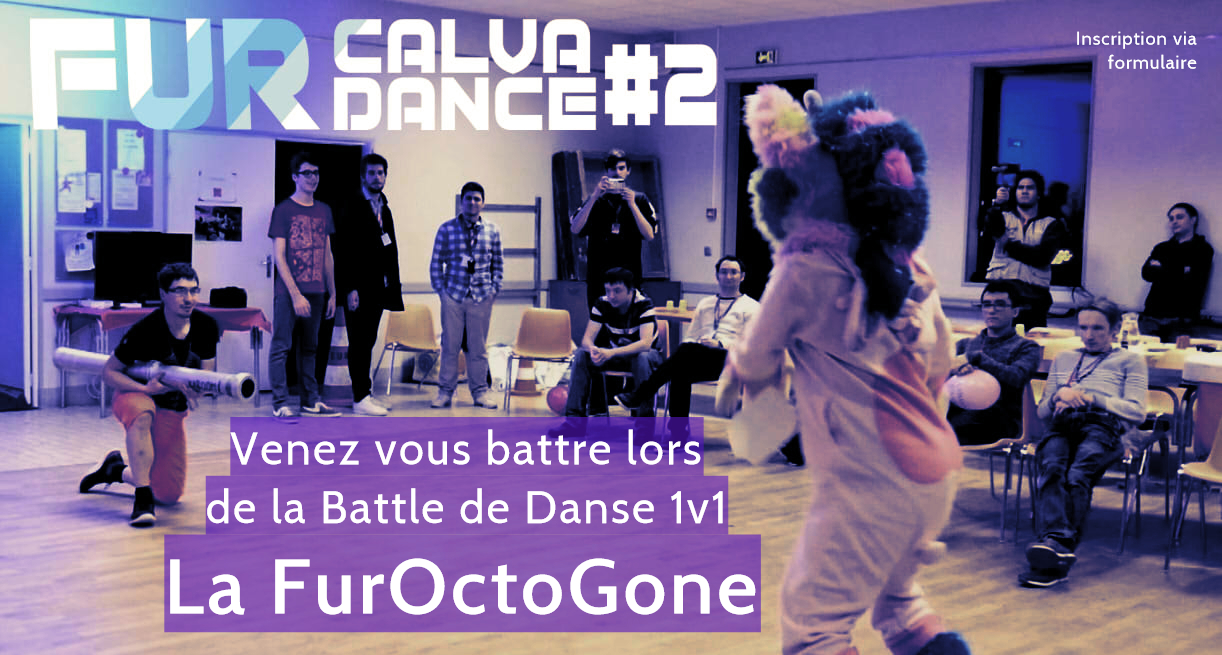 - En plus des diverses activités/jeux et soirée de danse, nous organisons une battle de Danse : la FurOctoGone. N'hésitez pas à vous inscrire dans un 2ème temps via un formulaire en ligne si vous souhaitez y participer et montrer vos plus beaux moves poilant !