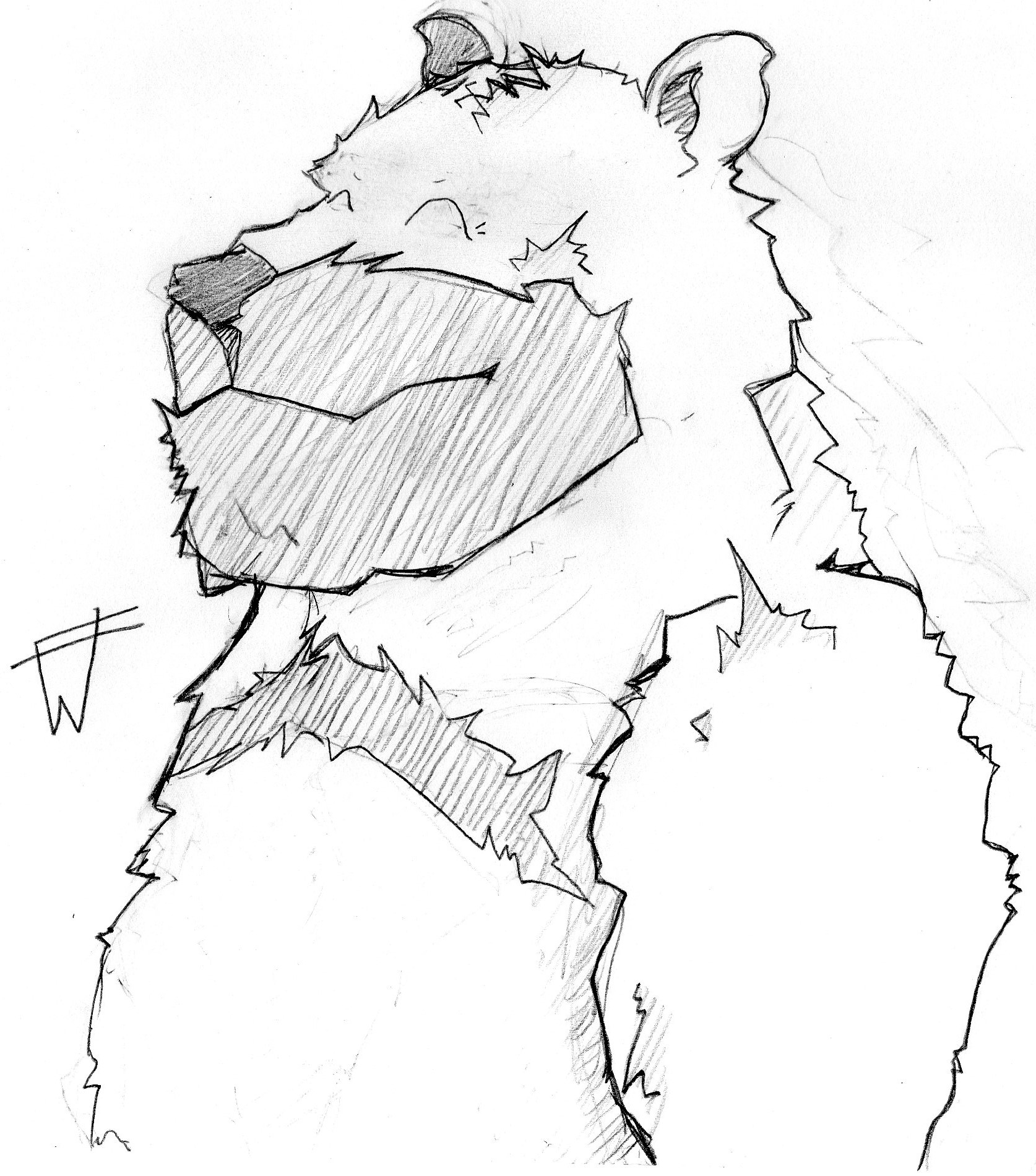 Ca vaudrait le coup de creuser dans ce sens et pourquoi pas de l'encrer ? En revanche si tu cherchais à faire un ours, ça ressemble plutôt à un lion, sur le coup. Je pense que c'est du aux oreilles, un peu trop grandes et un peu trop fluffy pour être celles d'un ours. N'hésites pas à prendre des photos de référence pour t'aider.