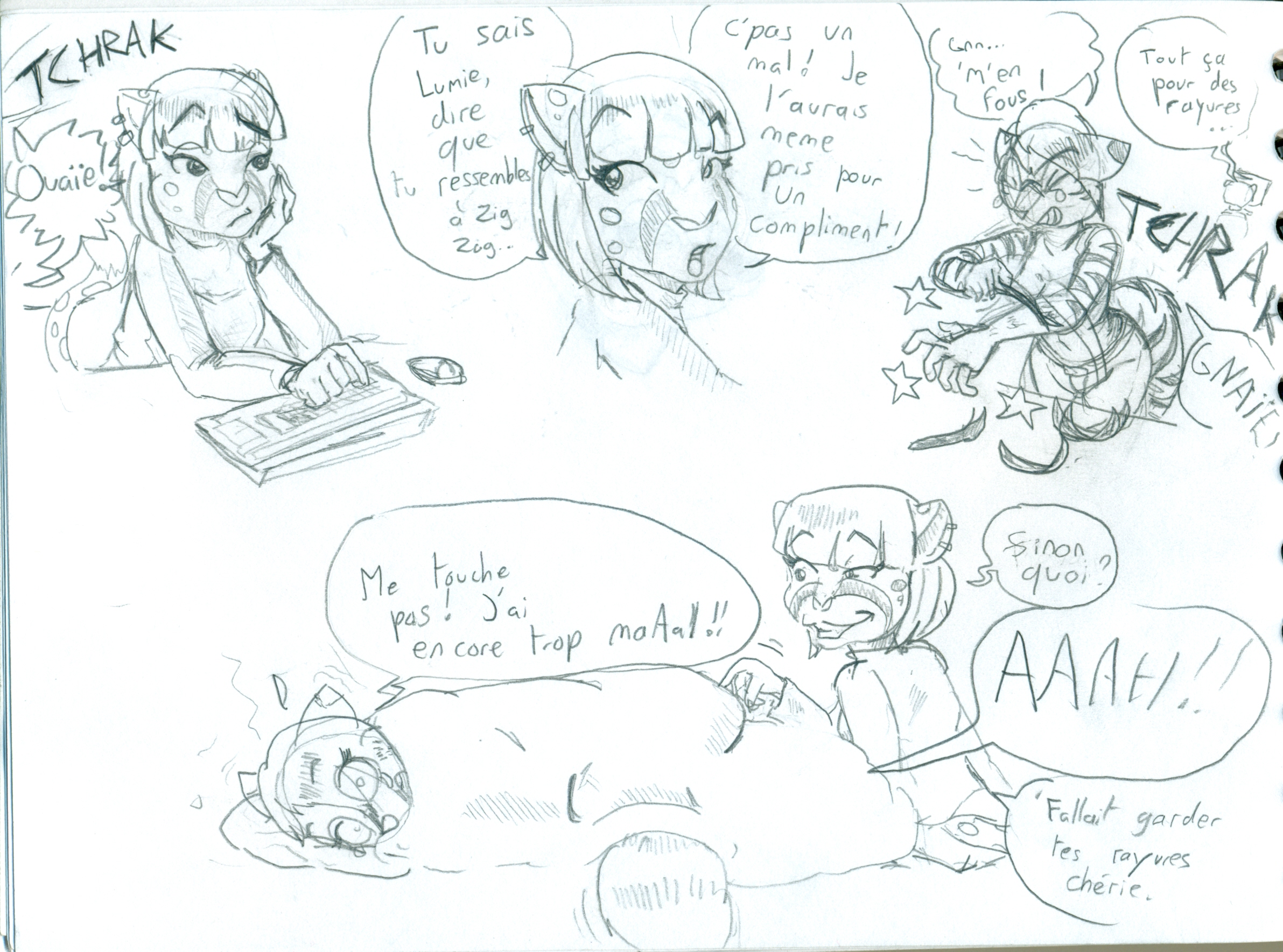 Depuis plus d'un an, je m'imagine une histoire post apocalyptique (la technologie de cette époque serait un mélange entre le futuriste, l'actuel et les générations passées) avec des personnages furry. A un moment de celle-ci aura lieu un immense conflit entre deux partis. Je me suis donc mis à dessiner des croquis des appareils volants qui seront sur place (Non transport de troupes)