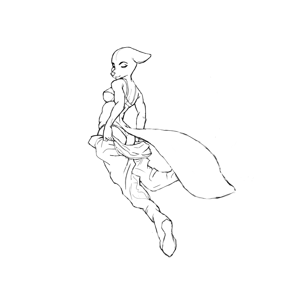J'ai alors pensé à mes bouquins qui apprennent à dessiner en montrant des exemples de squelettes. J'me suis donc dis qu'j'pourrais profiter d'cela pour avoir des poses déjà bonnes et qu'il ne me resterait plus qu'à faire le fond, les détails et la colo' !