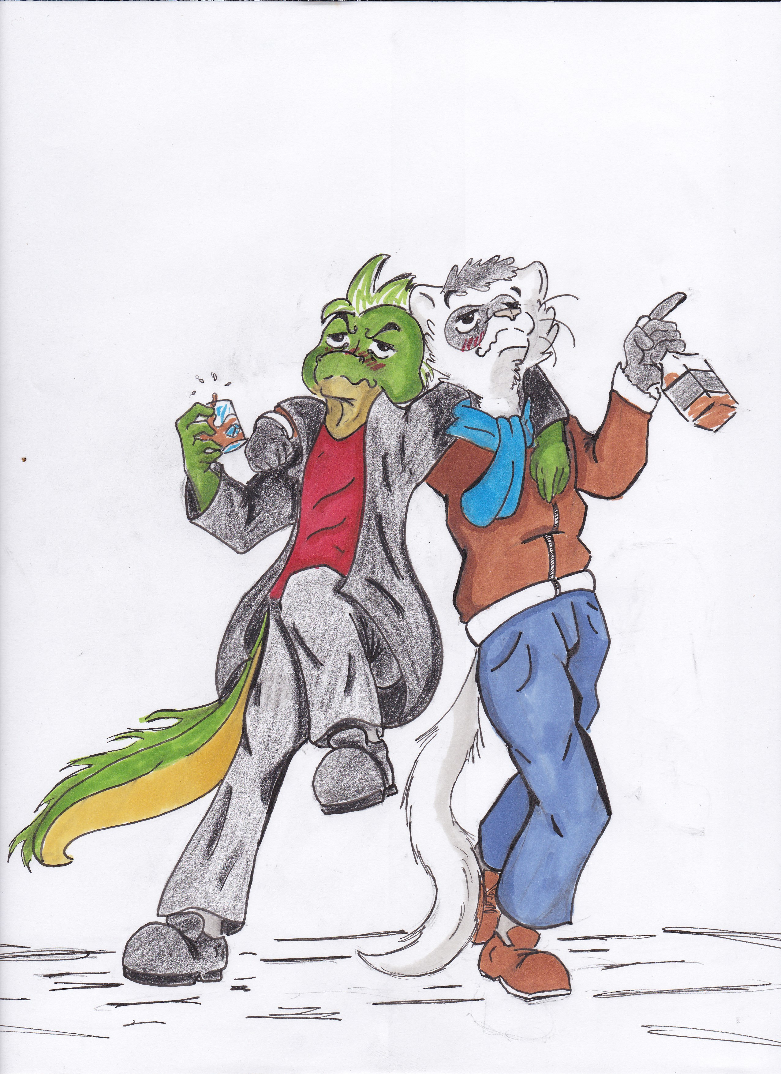 Et tes perso sont sympa, jolies expressions. Attention aux queues par contre, elles donnent l'impression d'être seulement rajoutées après coup, pas toujours bien placées, et souvent trop fines à la base. C'est la suite de la colonne vertébrale, à retenir !