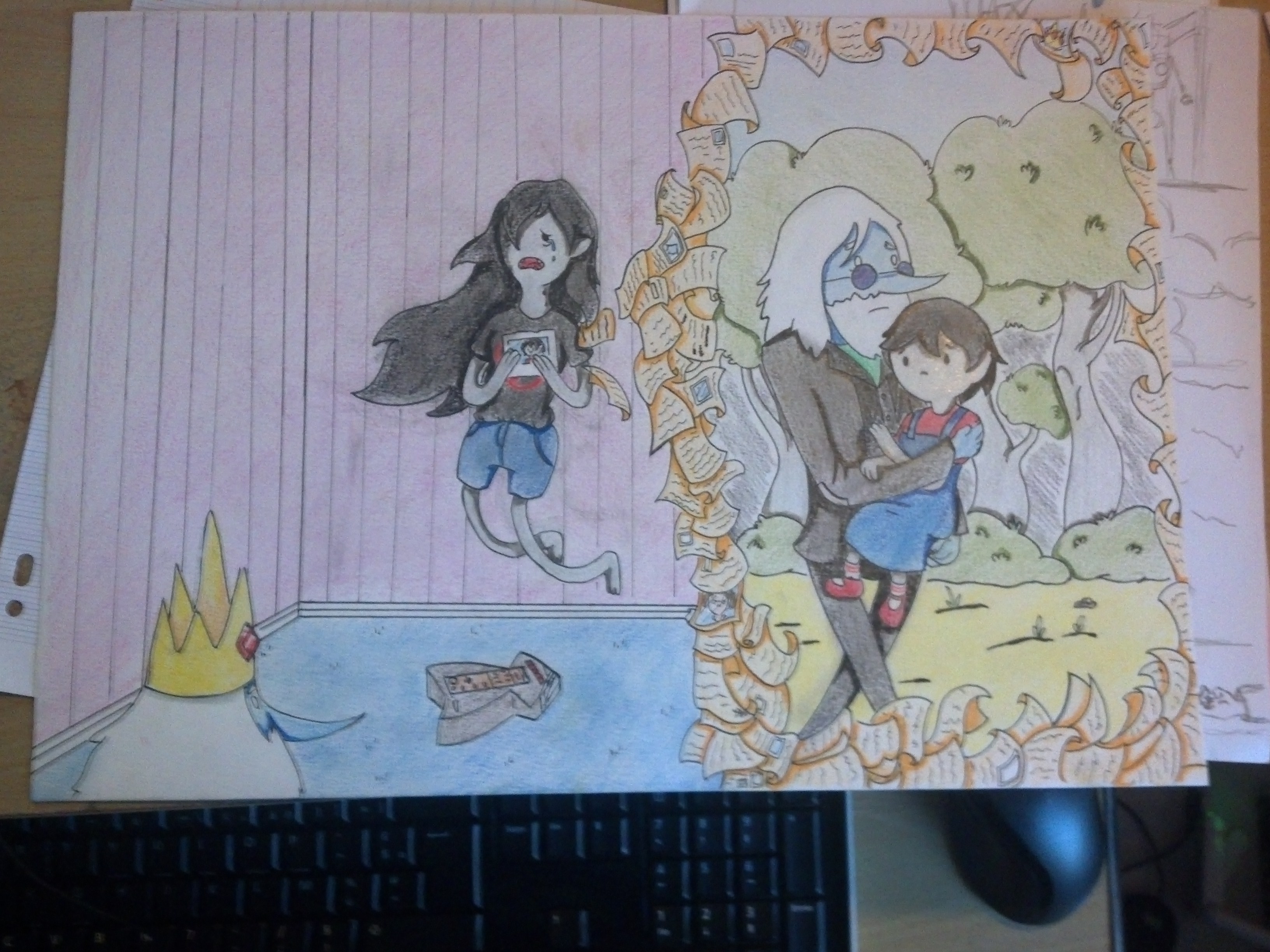 ! Merci du conseil !Et bien voici un grand fan art de adventure time fait sur une feuille A3 qui m'as pris du temps , c'est un fan art de l'épisode I remember qui m'as beaucoup touché :'c ( la chanson de l'épisode : https://www.youtube.com/watch?v=vknDUJ3MM1M )