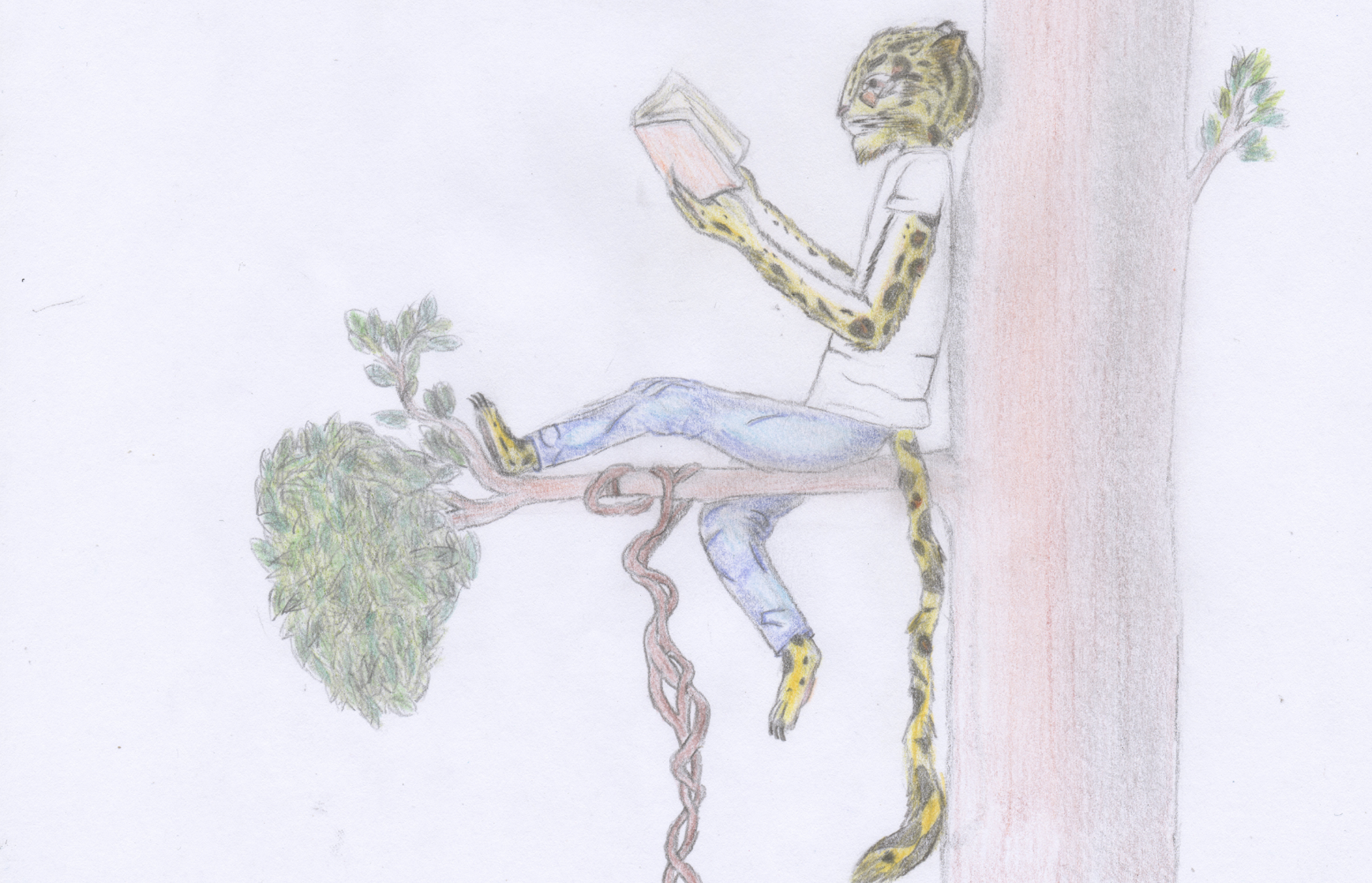 Par contre les cuisses du personnages sont un poil trop longues par rapport à là jambe (et la pattes postérieure gauche semble flotter) , et son dos est rigide, alors qu'une colonne vertébrale, même arquée ou arc-boutée, est sinusoïdale, mais dans l'autre sens : au lieu d'être convexe, le bas du dos au niveau des reins devrait être concave (ou alors ton léopard a de sérieux problèmes de surpoids, bien que ça resterait plausible, si le drapé du tshirt était vertical). Pis le feuillage, c'est... bof.