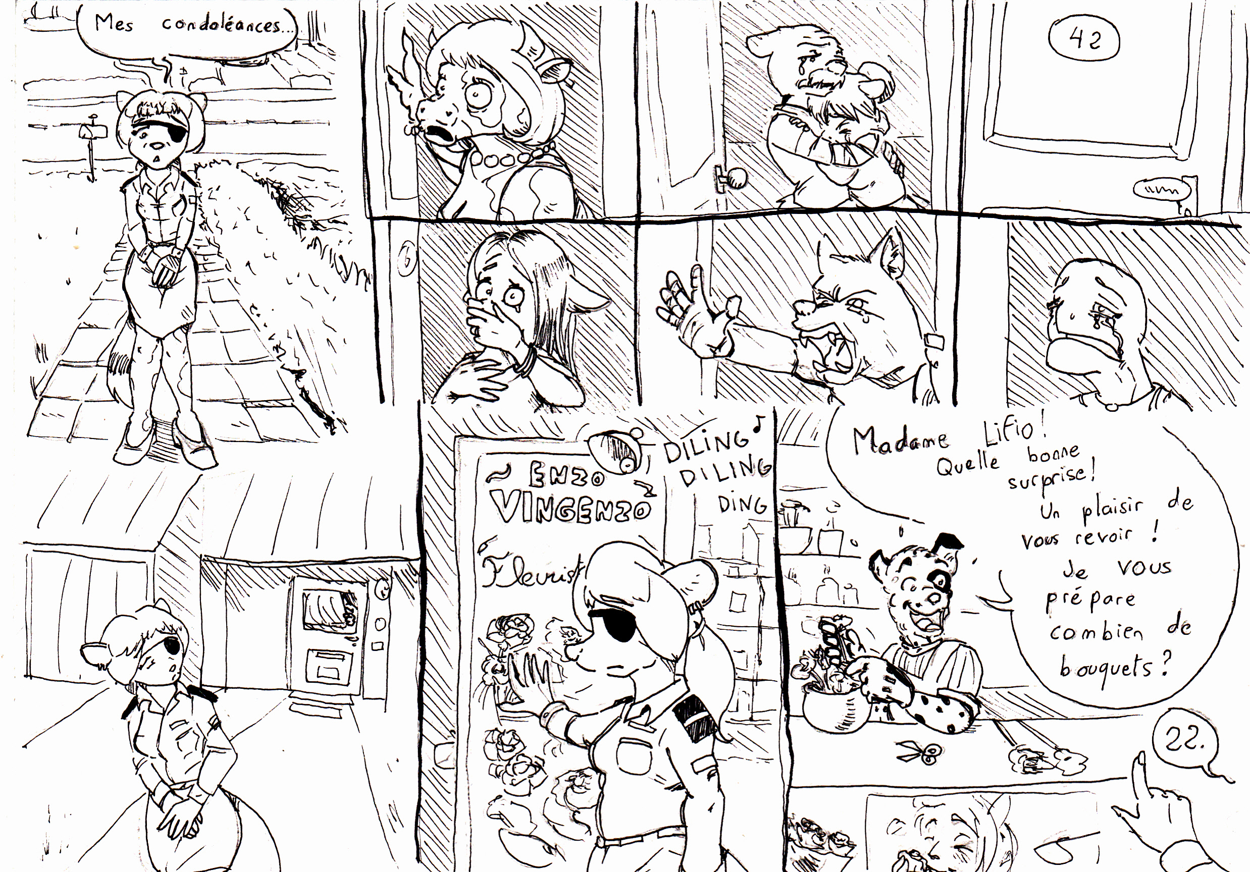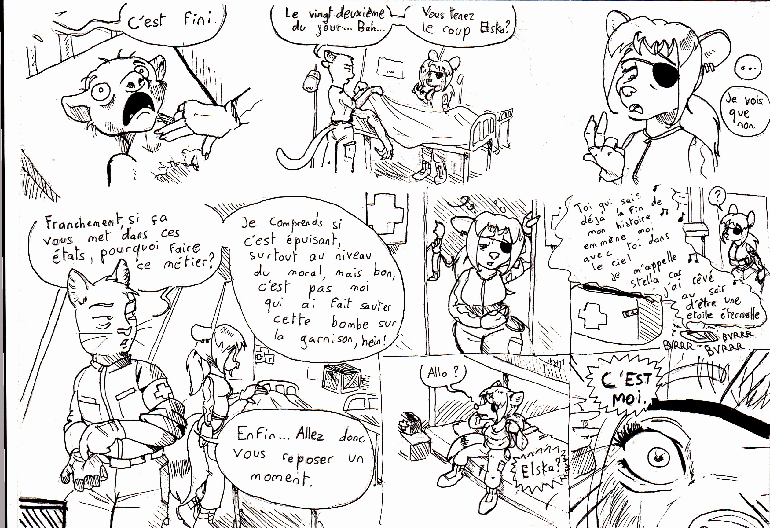 Très jolie la case où l'on retrouve tout tes personnages. On send de la force là dedans. Et je suis contente de voir apparaitre un semblant de meilleur organisation dans tes bd ! Si tu conintue comme ça, on aura de vrai planches !