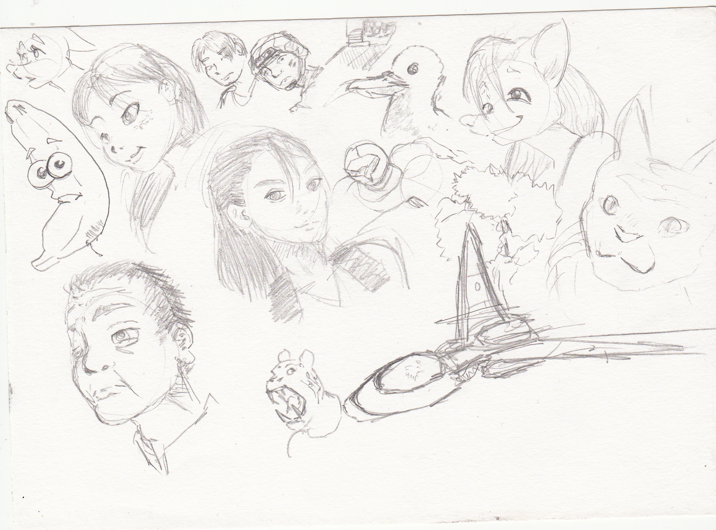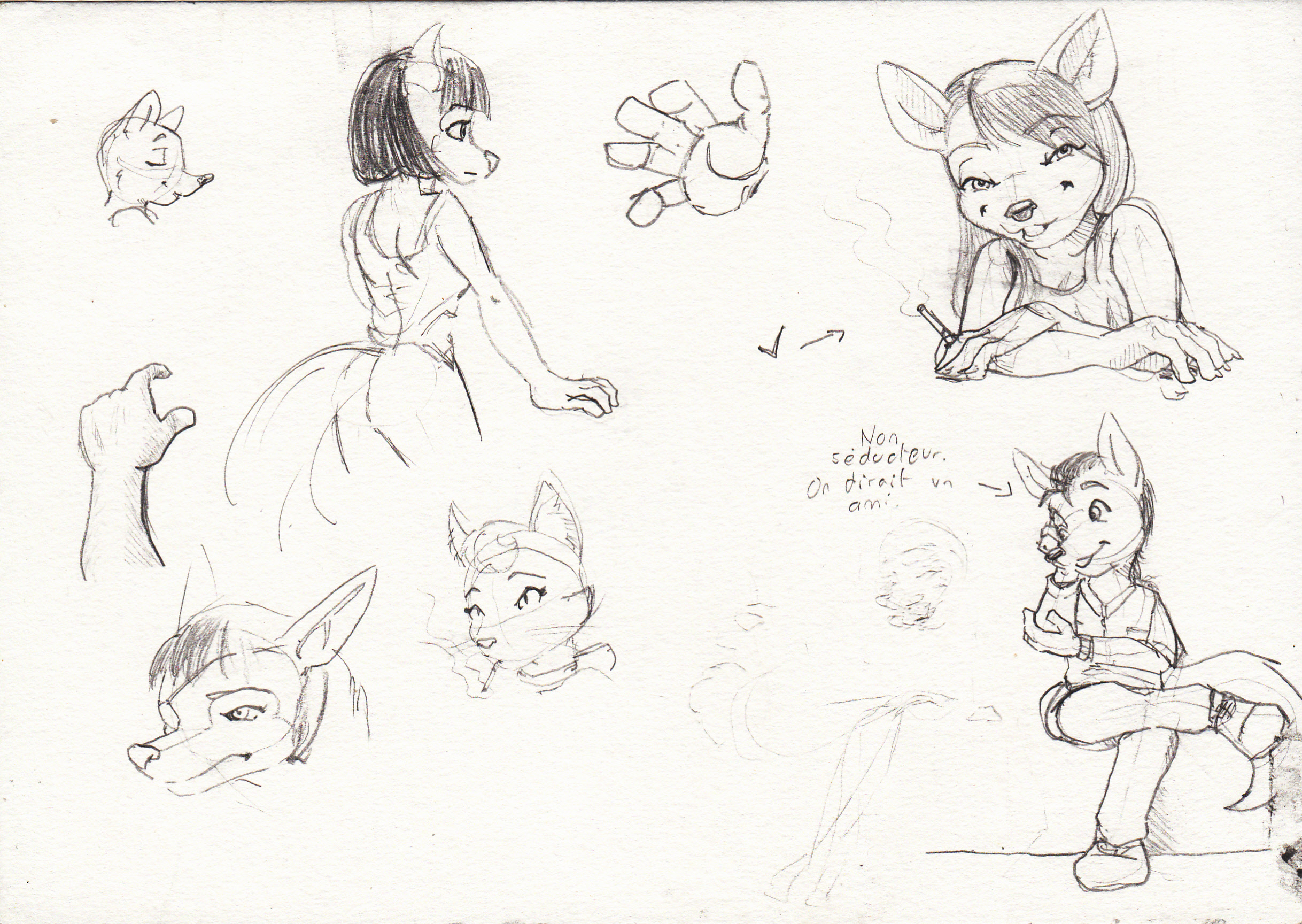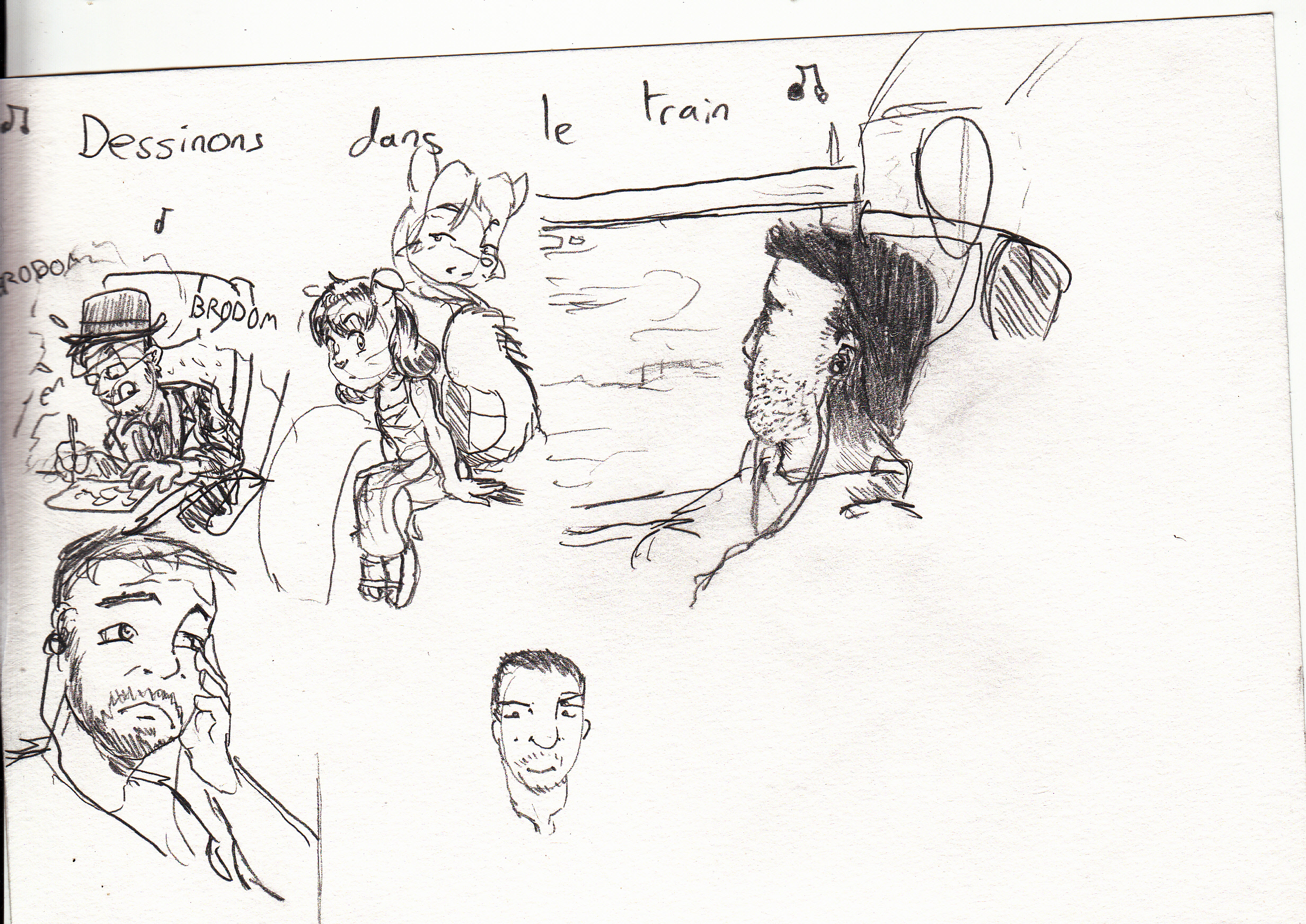 Et quelques dessins que j'ai dessiné par distraction pendant que je bavardais, prenais le train où bronzais :