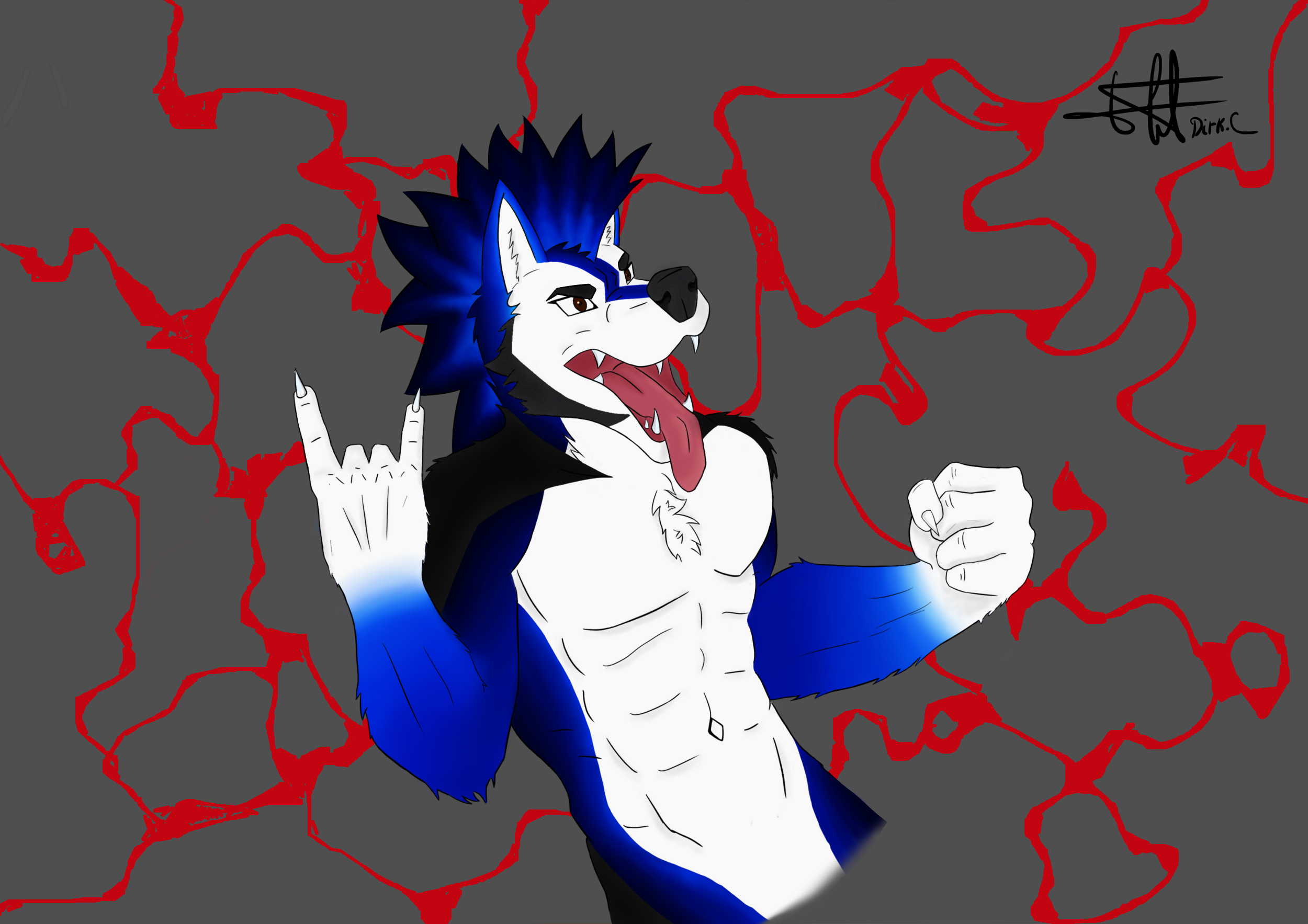 loup (canis lupus)  (Dégrader de couleur noir bleu et blanc partant du dos jusq'aux pattes)   Anthro