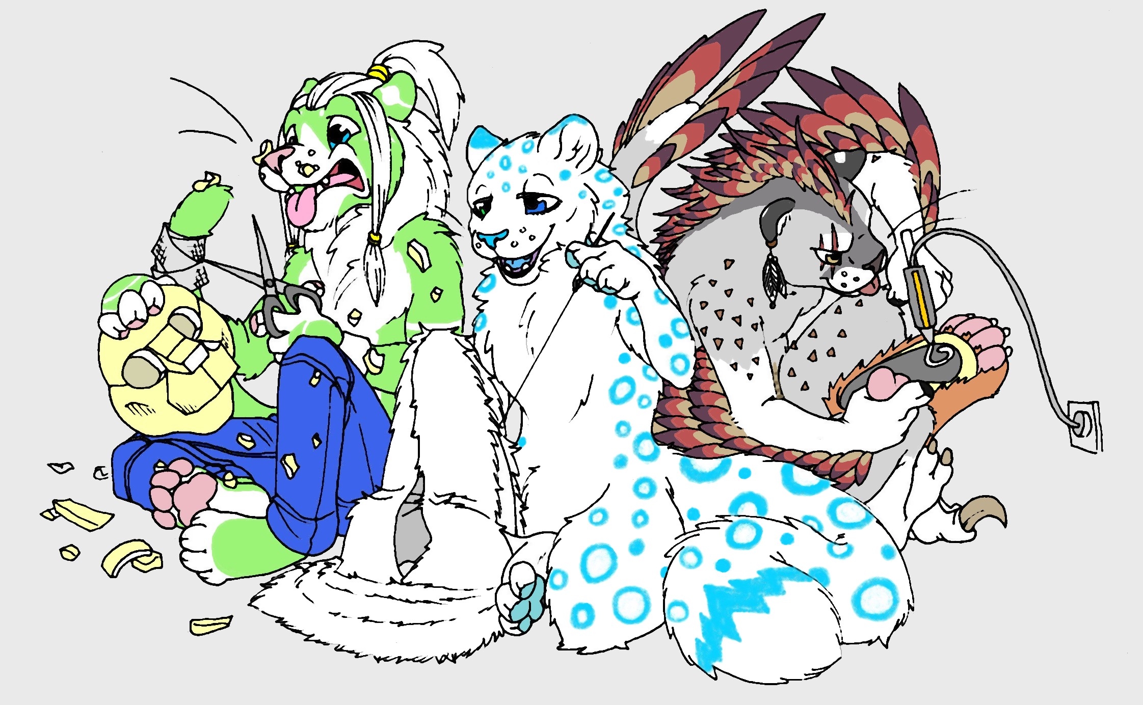 Tout d'abord moi, Grimm et Scar en pleine confection de fursuit ( Scar : ton furso est vraiment pas simple à dessiner et encore plus à colorier :D :arg: )