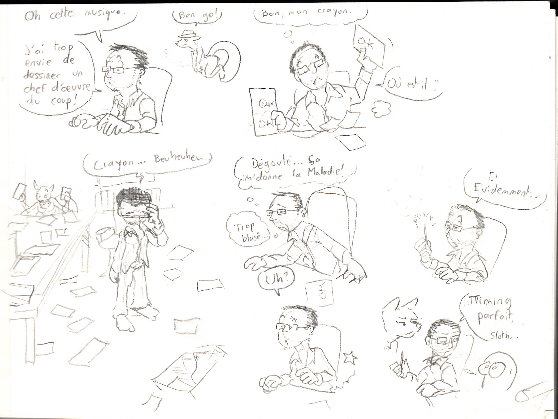 Une bédé avec des humains, ouaip, que j'ai commencée cette nuit en pleine insomnie. Elle se nomme "L'amélie".