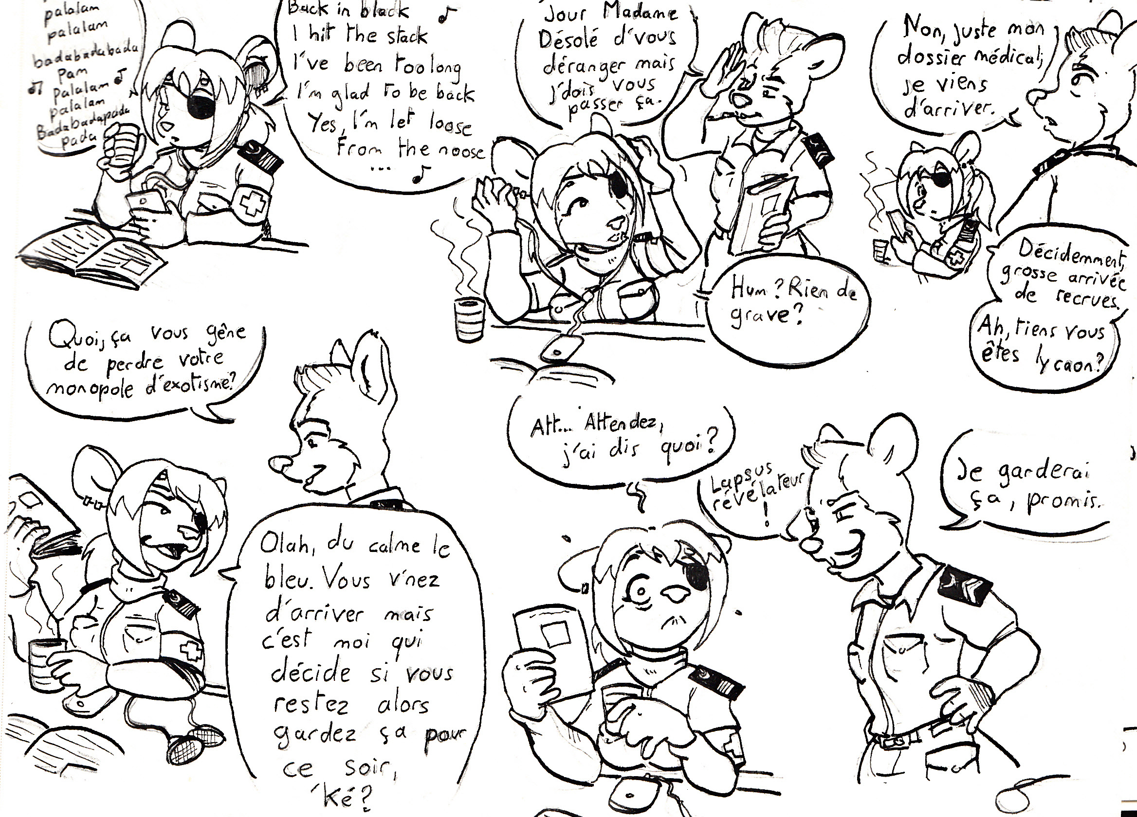 Par ailleurs, j'ai eu la chance de retrouver mon ancien prof de BD qui a pu me faire part de très bonnes critiques sur mes dessins. Ce sera mis en application sur les prochains.