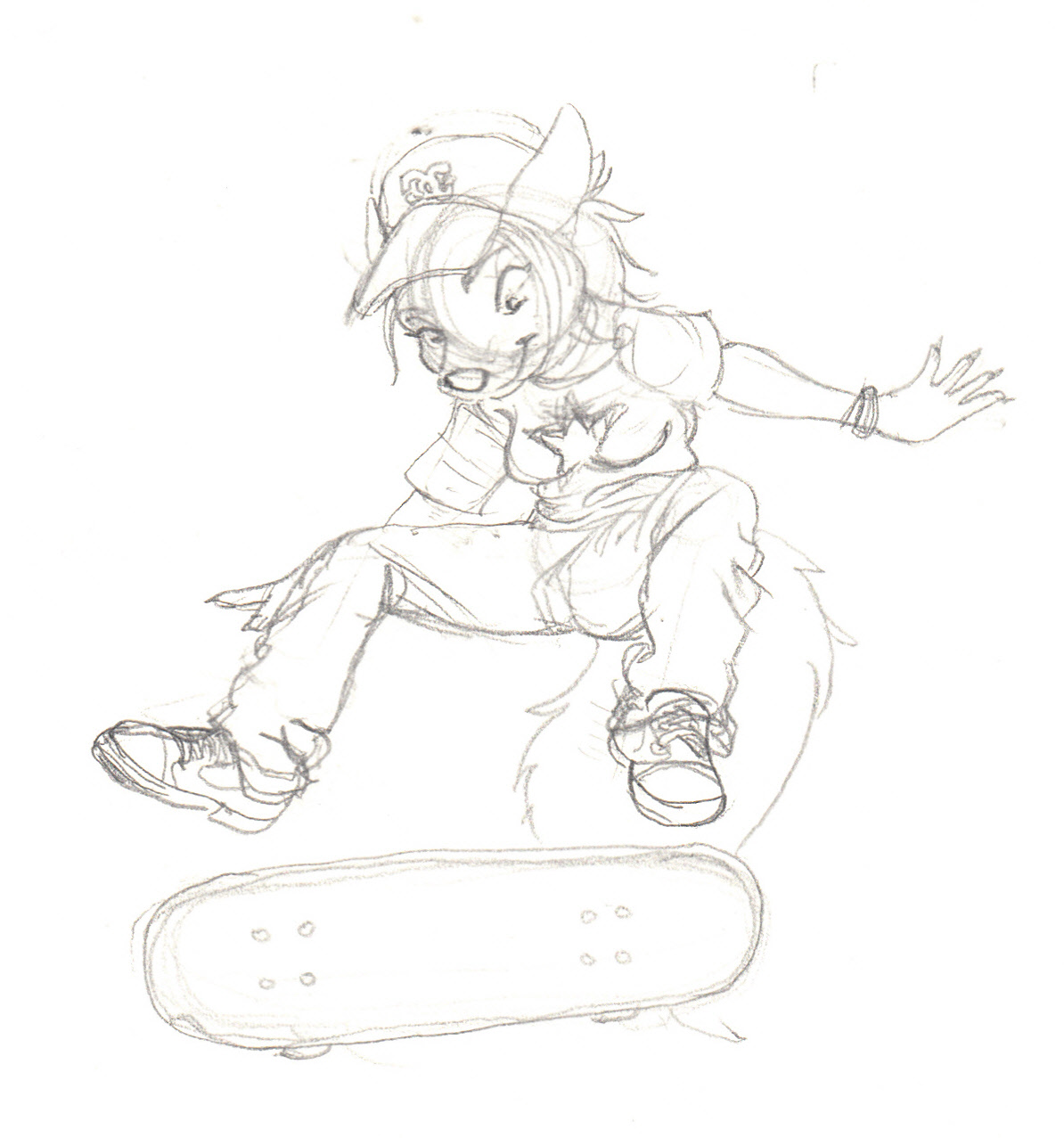 Par contre, va falloir bosser sur les personnages en perspective, le perso assis et celui en skate, l'effet de pers sur les jambes ne rend pas du tout. (pour le skate, il manque juste un peu d'épaisseur c'est presque bon ^^)