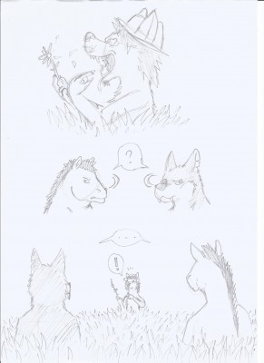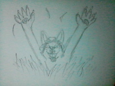 Un petit croquis de Stromo jouant dans l'herbe X)