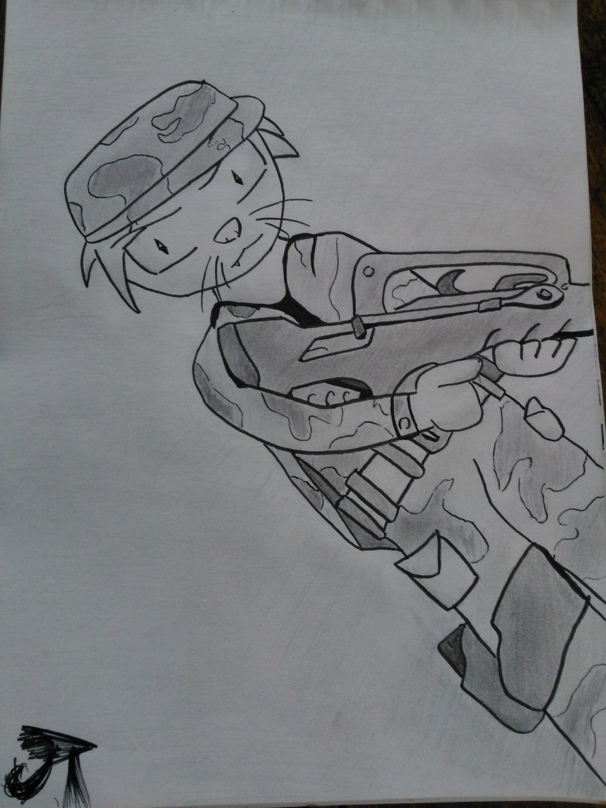 je respecte ton talent j'aime moi aussi le air soft mais au québec c'est un privilège qui est réserver au 18 ans et + :mad: en france vous avez le droit au réplique de faible puissance c'est déja gros comme avantage. en tout cas moi j'ai un peu de difficulté en ce qui conserne le dessin mais cela n'empèche pas que j'ai pu esseyer. continue comme sa :D