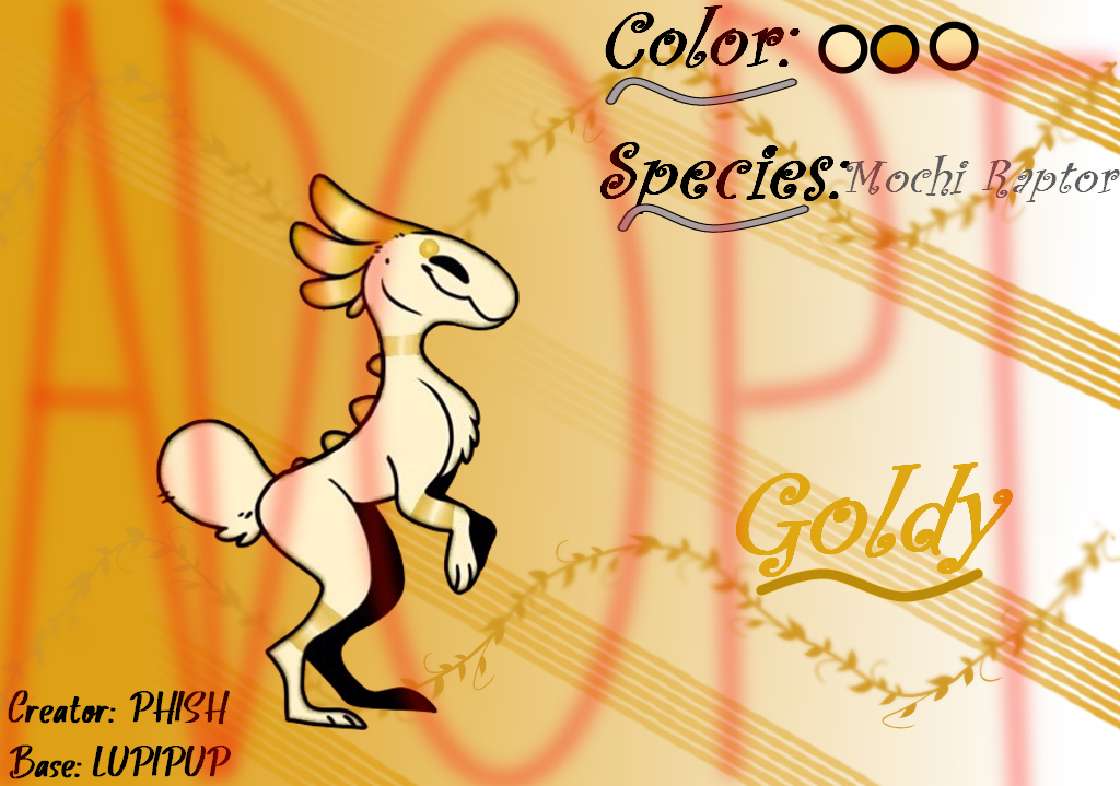 Je met à adopter Goldy un Mochi Raptor Femelle. Faite par moi (Phish) sur la base de LUPIPUP
