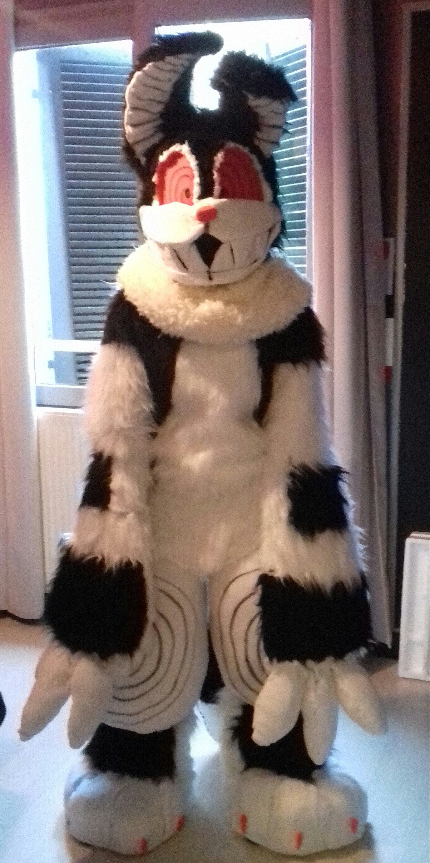 Depuis le temps, me revoilà et ma fullsuit est terminé! Il me manque que quelques détails ainsi que la fourrure rouge pour le cou, les pointe des oreilles et le dessus du crâne.