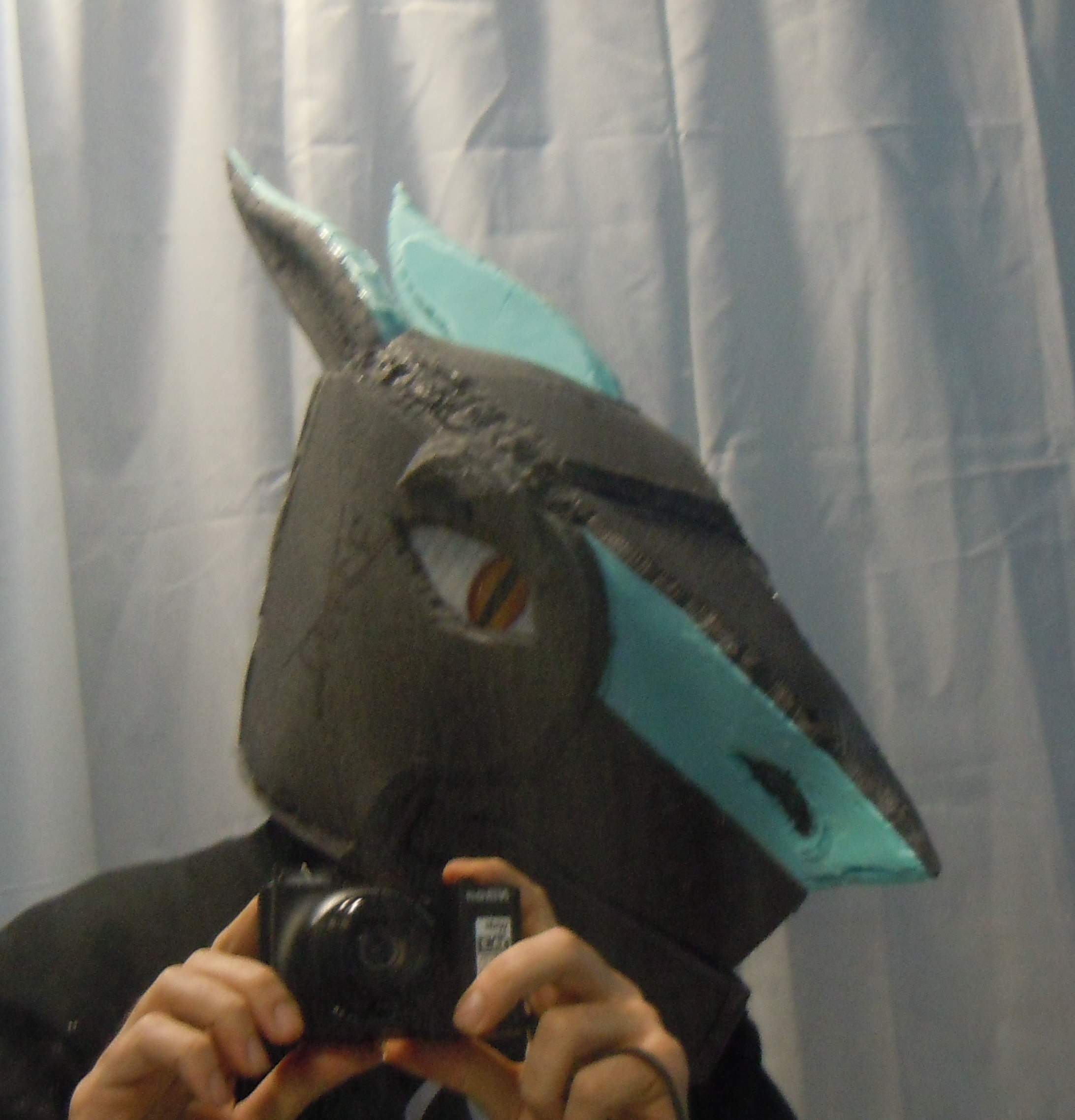 Pour ce qui est des yeux, n'aillant pas 2 petits trous près des faux yeux pour voir j'ai pensé à soit utiliser des feuilles transparente de PVC, soit une toile moustiquaire que je mettrais en couleur pour pouvoir voir au travers, faut quand même bien que j'aille un minimum de visibilité.