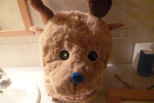 Edit : j'ai essayé de me prendre en photo seul u.u, dans la tête c'est pas encore ça, y'a un ggggggggggroooooooos truc qui me gène du côté gauche. Du cou faol, je ne pourrais rembourrer plus (là j'ai rembourré ) et je ne laisserais personne autre que moi essayer de la mettre parce que y'a tout une technique ...