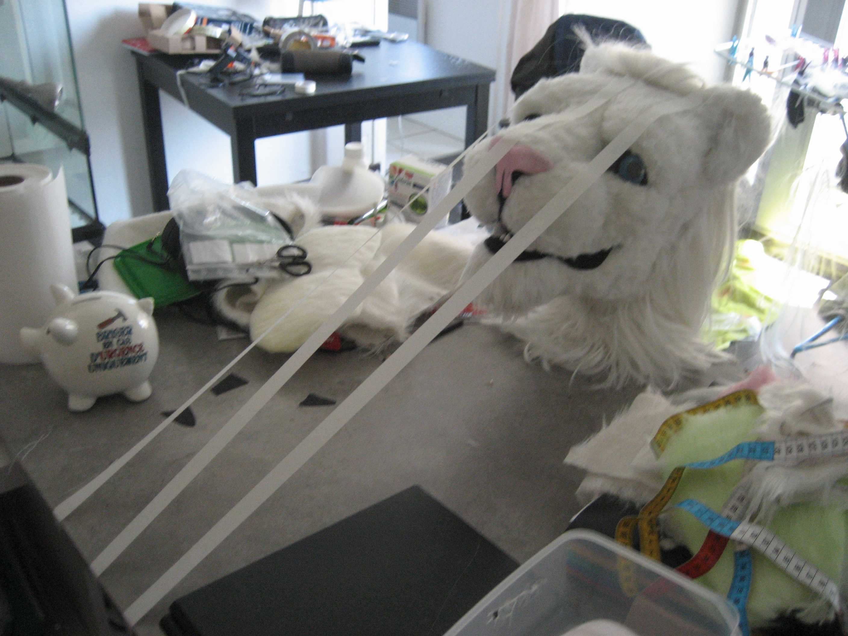 Au programme : demain, trouver comment et teindre ma fourrure, dont la tête (j'ai déjà un peu essayé (acrylique dissolue, bombe aérosol, ... je suis vraiment pas rassuré, rien marche sans tout détruire