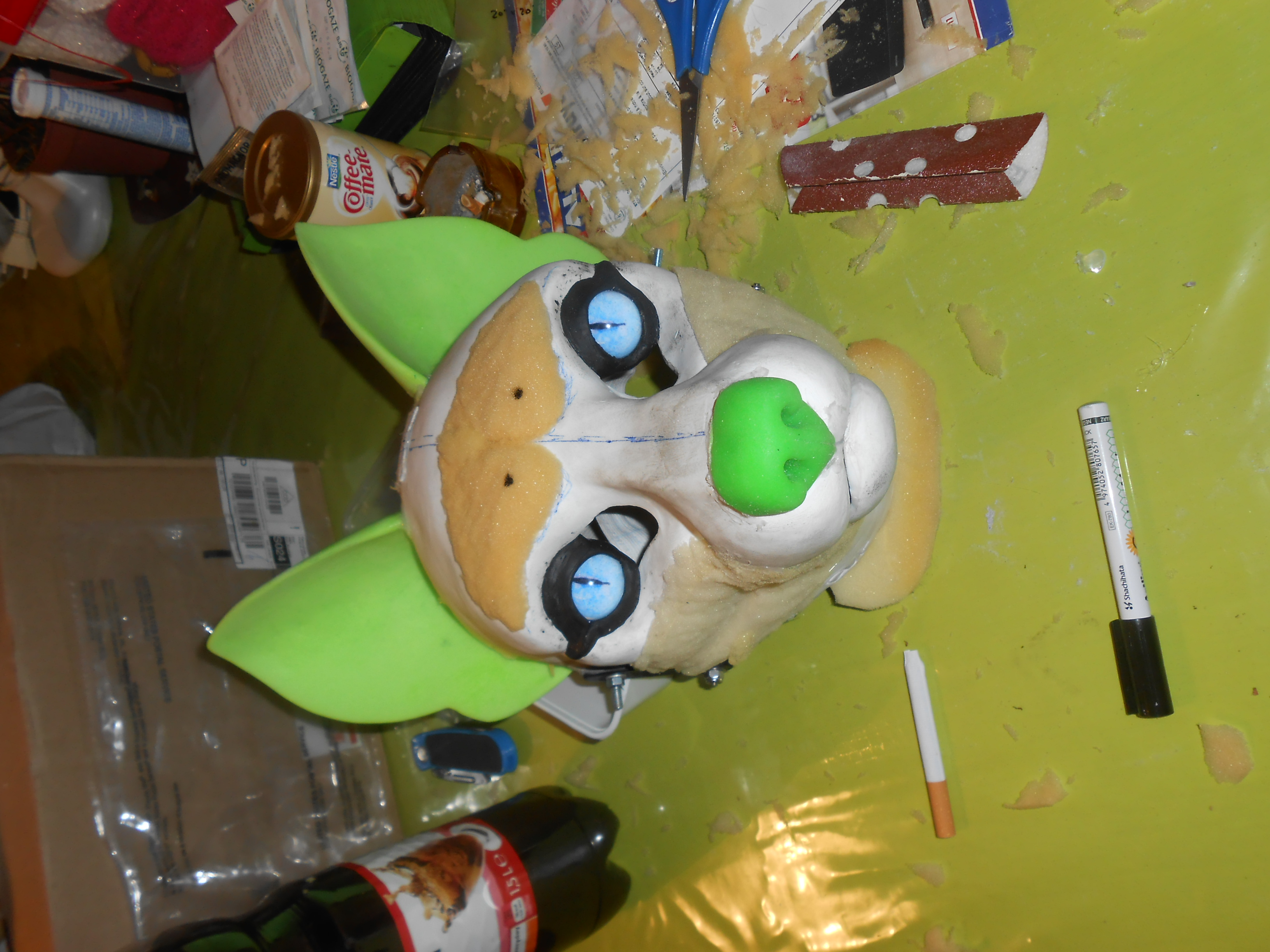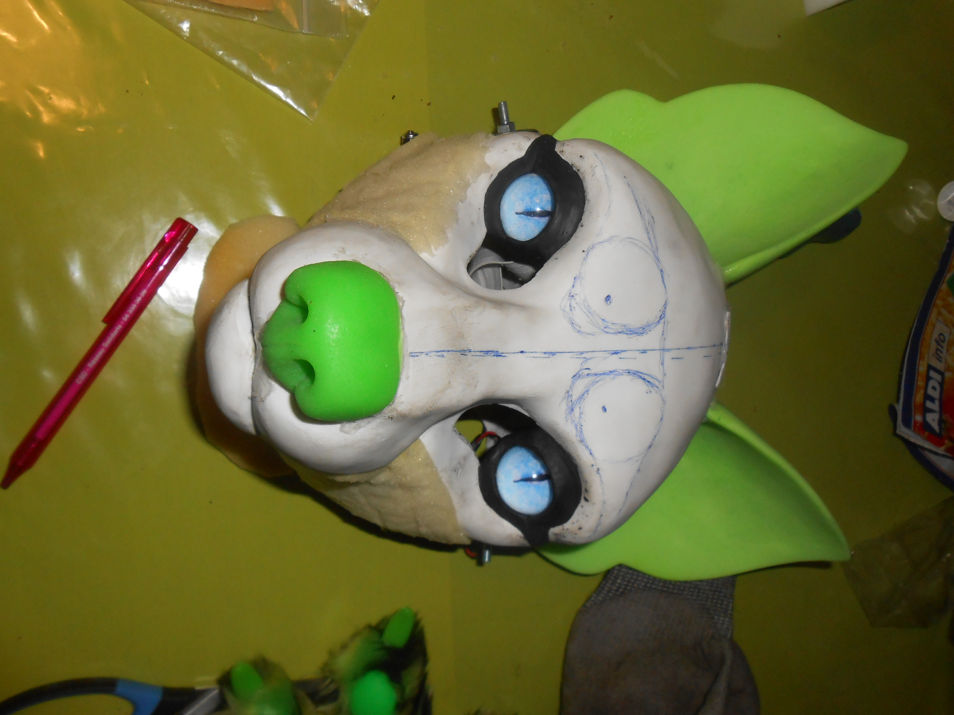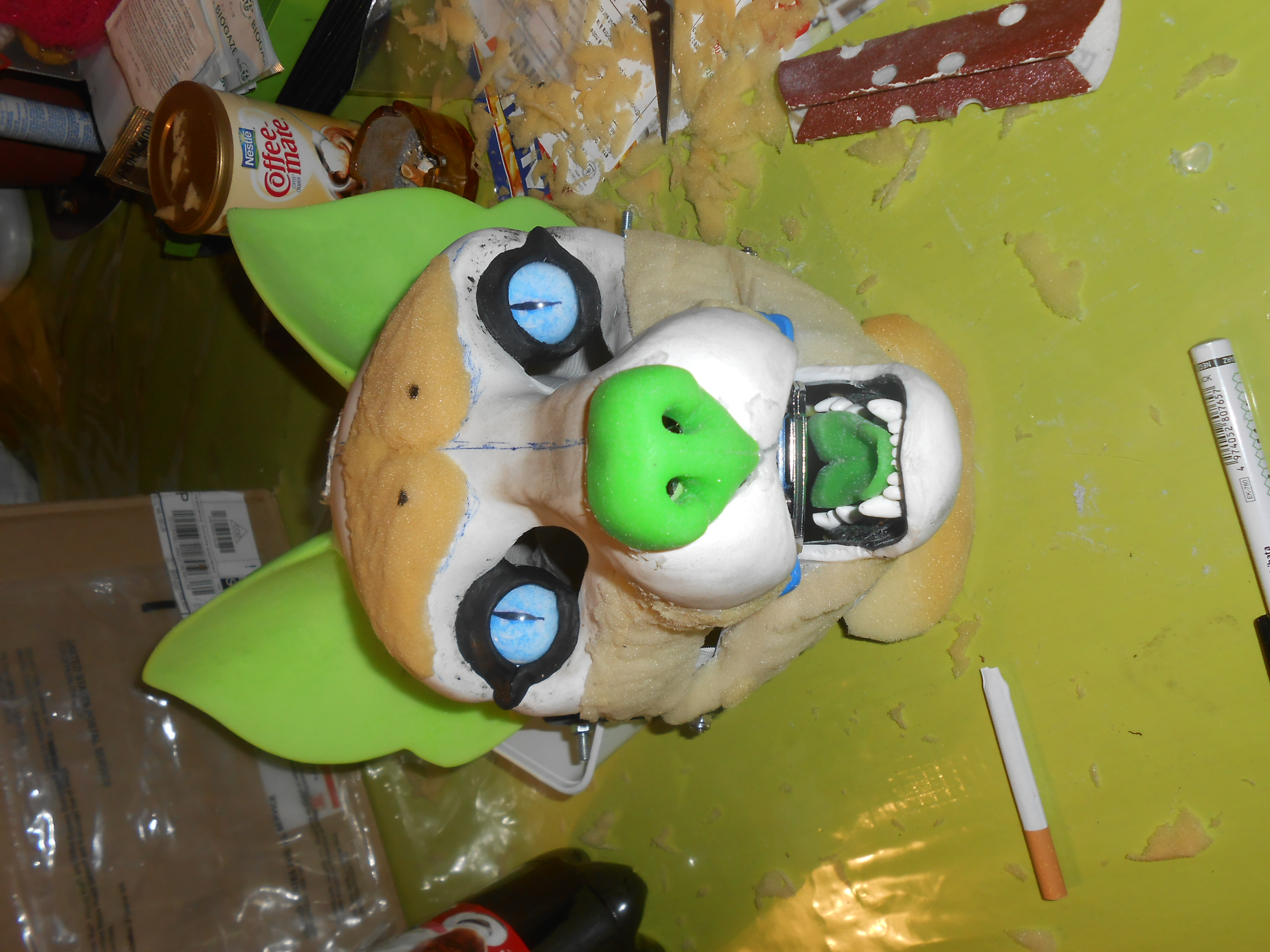 Un conseil: fais pas la même erreur avec la fourrure, colle-la sur la base lorsque que la gueule est ouverte, sinon, bah... soit tu pourras pas ouvrir la bouche, soit tu devras la fendre jusqu'aux oreilles XD