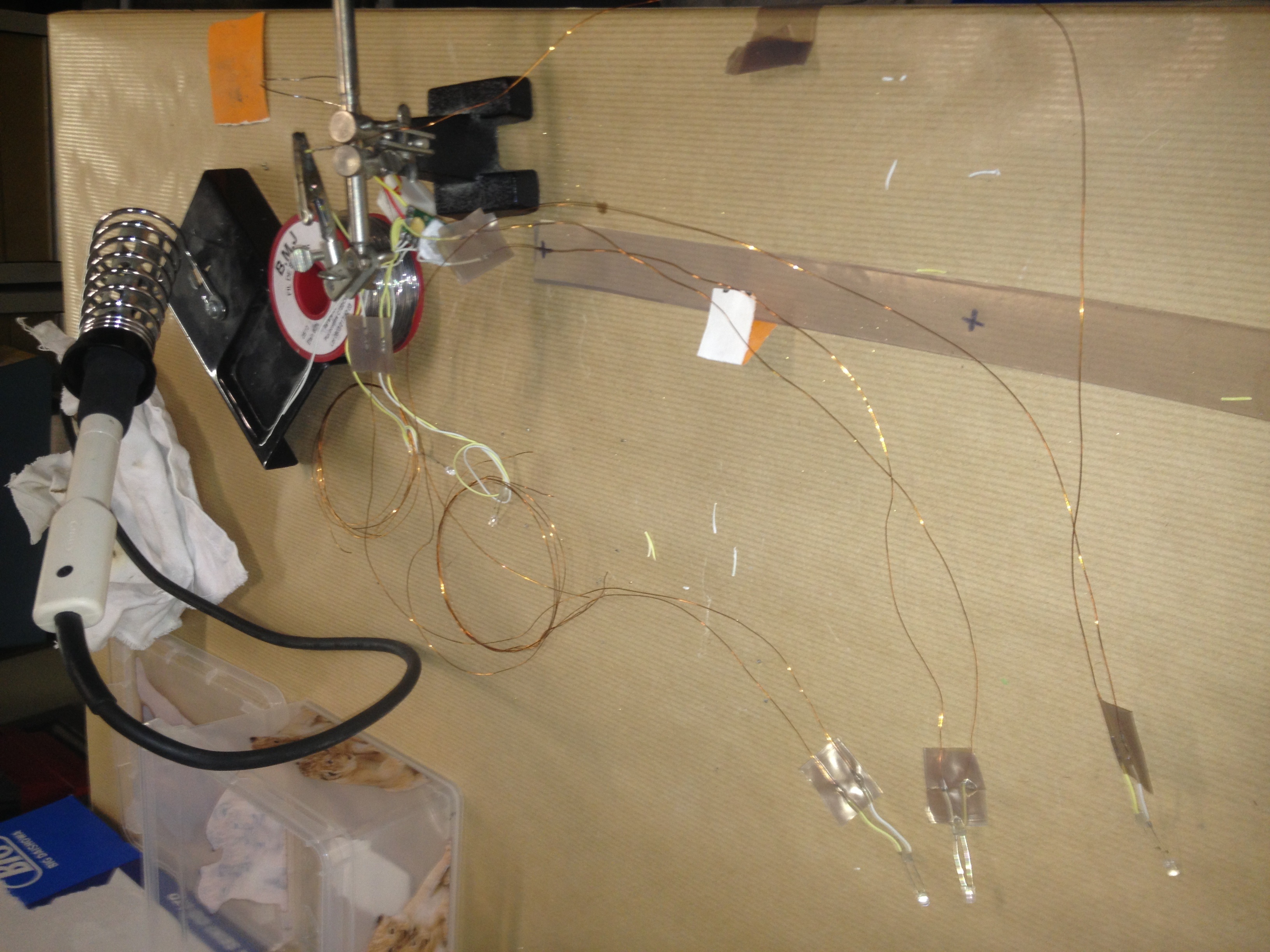 les yeus a led bleu, dans les oreille et peut-être dans le dos ou le ventre