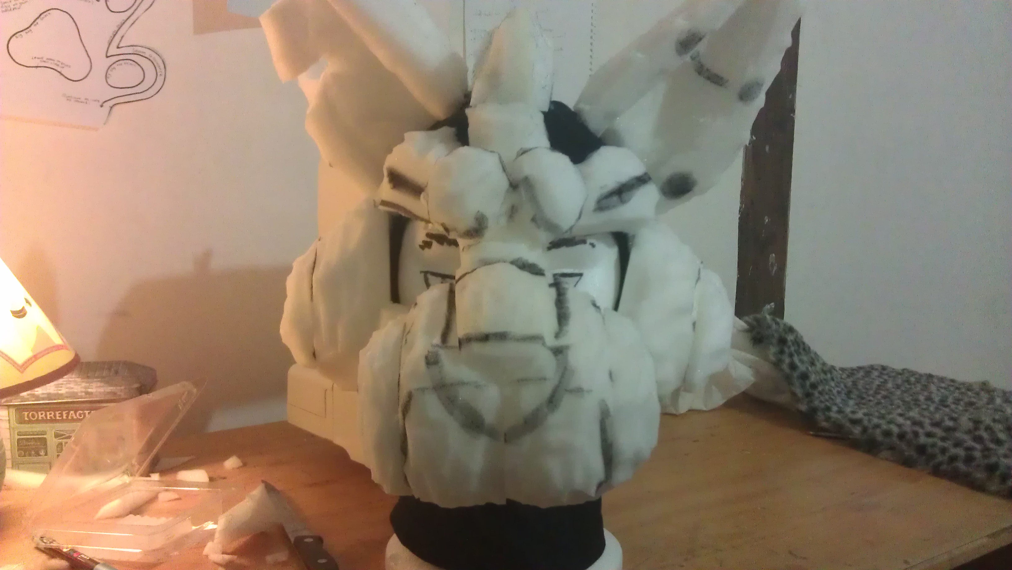 BonJour a tous ! Voilà, je me suis re-lancée dans la création d'une nouvelle fursuit (un loup) Les ref sheets arrivent bientôt, mais j'aimerai des avis sur le début de la forme de la mousse pour le museau , et plus tard, des conseils pour la fourrure (j'avais commandé sur acheterdutissus.com, et bah, c’était la dernière fois. Et j'aimerai avoir de la belle fourrure j'ai vu fabric.com qui me tente...a voir )