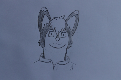 Donc voilà, c'est un loup anthro blanc et gris avec les cheveux brun et les yeux vert qui me ressemble énormément à différents points de vue (une sorte de frère jumeau anthropomorphique ^^ ).
