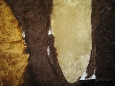 • Des restes de fourrure de plusieurs types (brune courte, brune longue, dorée longue, crème à poil ras)