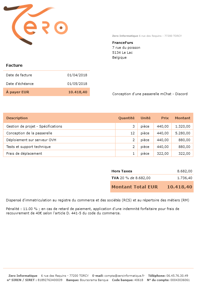 Orthank a écrit: Comme vous vous en doutiez, il s'agit bien d'un fake Cela dit, on s'est bien marré de notre côté ^^ Avec la fausse facture  Ozone a bien bossé le truc. x3 Le pire, c'est que ça aurait pu être crédible. Les prestations de programmation informatique, ça peut grimper dans ces prix là.