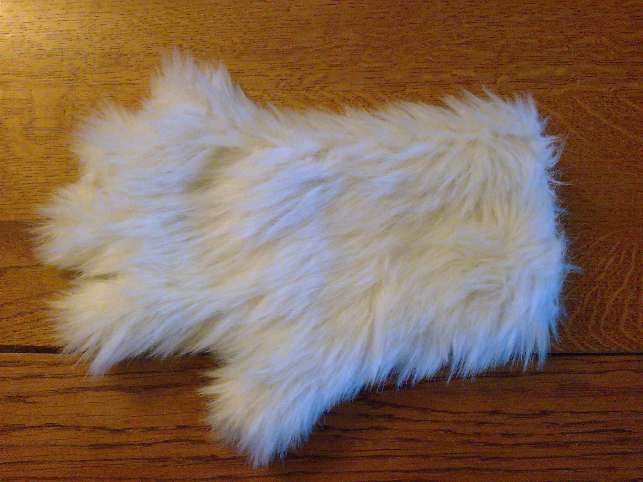 j'ai fait un "patron" pour les main puis j'ai découpé deux morceau de fourrure (en suivent le patron bien sur), bon sa ressemble pas a grand chose mais bon ^^...