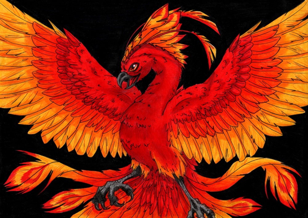 j'avais penser aux flammes mais, vus qu'elles auraient été de la même couleur que le phénix je me suis dis qu'on le verrait moins bien
