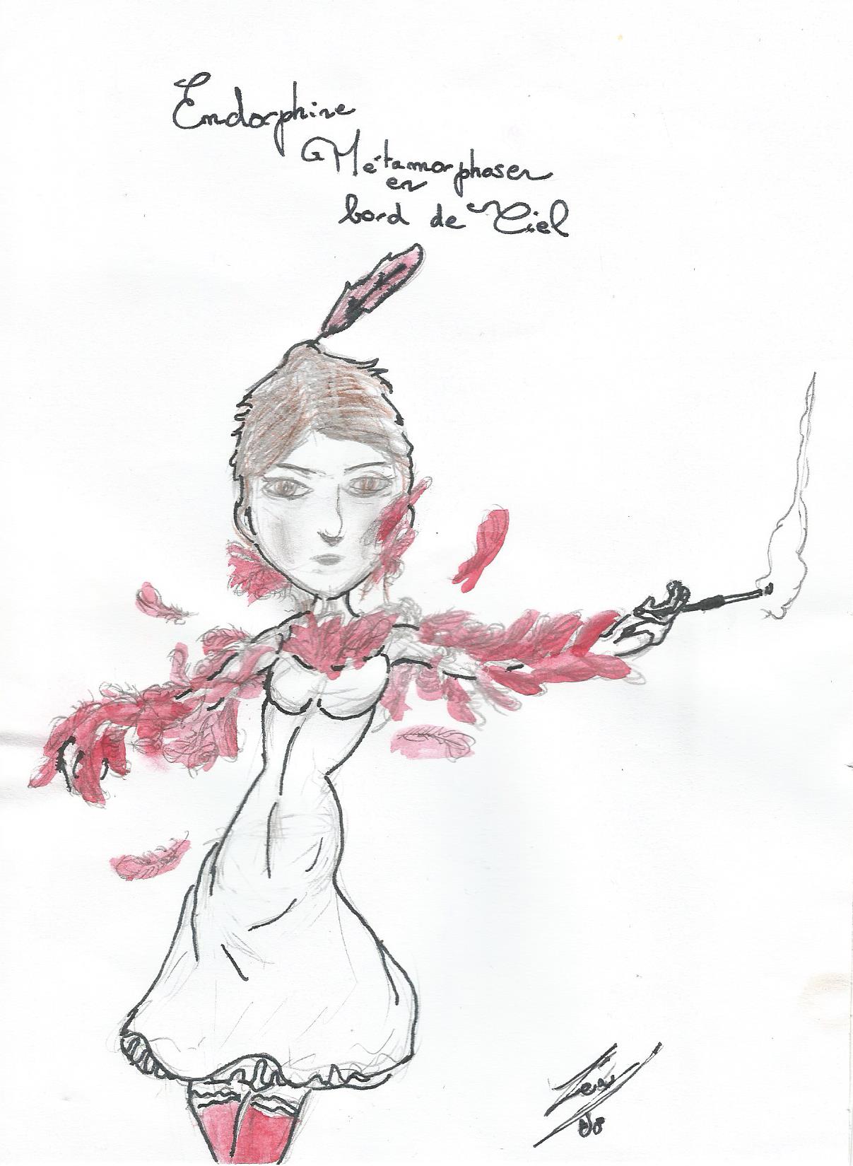 Et pour remercier une collègue à ma mère de m'avoir prêté le livre "Métamorphose en bord de ciel" (si vous connaissez Jack et la mécanique du cœur), j'ai fais ce petit dessin encré avec un peu d'aquarelle (pas forcement de bonne qualité, je prend ce que j'ai sous la main) et du crayon de couleur. Si les couleurs ne sont pas terribles, c'est à cause du Scanner :