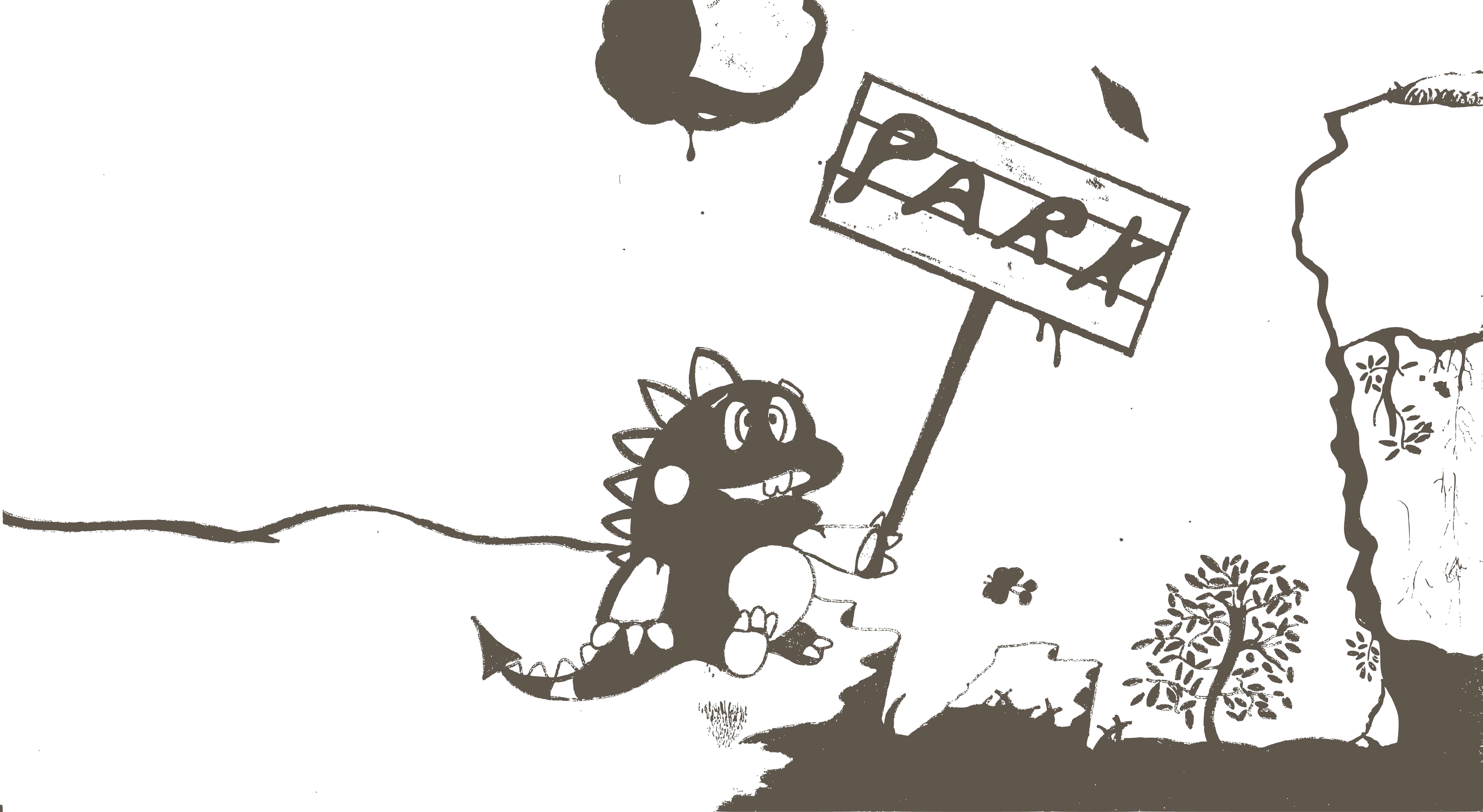 Du nouveau. Là je viens de retrouver un petit dessin qui traînait dans l'ordinateur depuis un certain temps. Il s'agît du petit dinosaure que l'on trouve dans Bubble dans un environnement préhistorique. J'ai reprit ce personnage en m'inspirant de la présentation de Spyro (il tient une pancarte). Le thème était 'La préhistoire" et les éléments donnés étaient "préhistoire, feuilles, vert, marron". J'avais pas trop d'imagination. xD