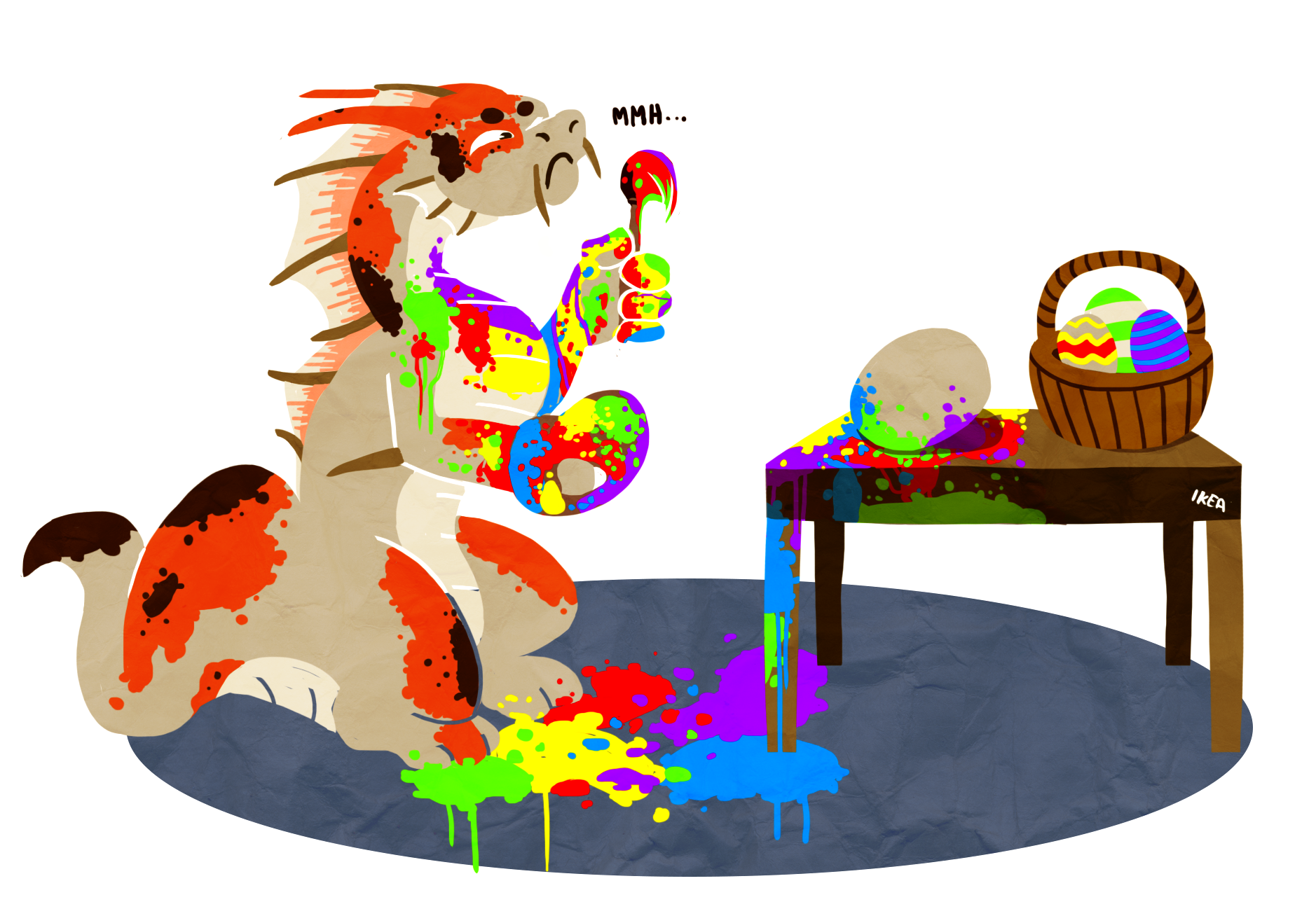 Et donc le challenge de Mister Regius était "dragon koi arc en ciel, avec comme thématiques la peinture et la maladresse" :3