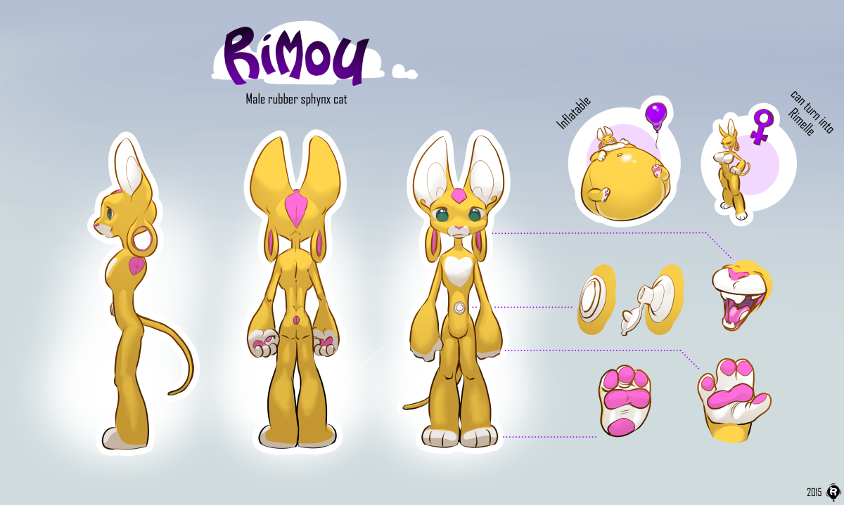 Alors le voici. Le matou avec valve, à la fois égyptien, à la fois bouddha, avec de grosses papattes. Le coté sphynx clarifie toute méprise sur la présence ou non de poil sur son corps. J'ai fusionné Rimou et Rimelle ensemble. Je n'ai jamais réellement réussi à séparer Rimelle de Rimou et je sens mieux la chose comme ça.