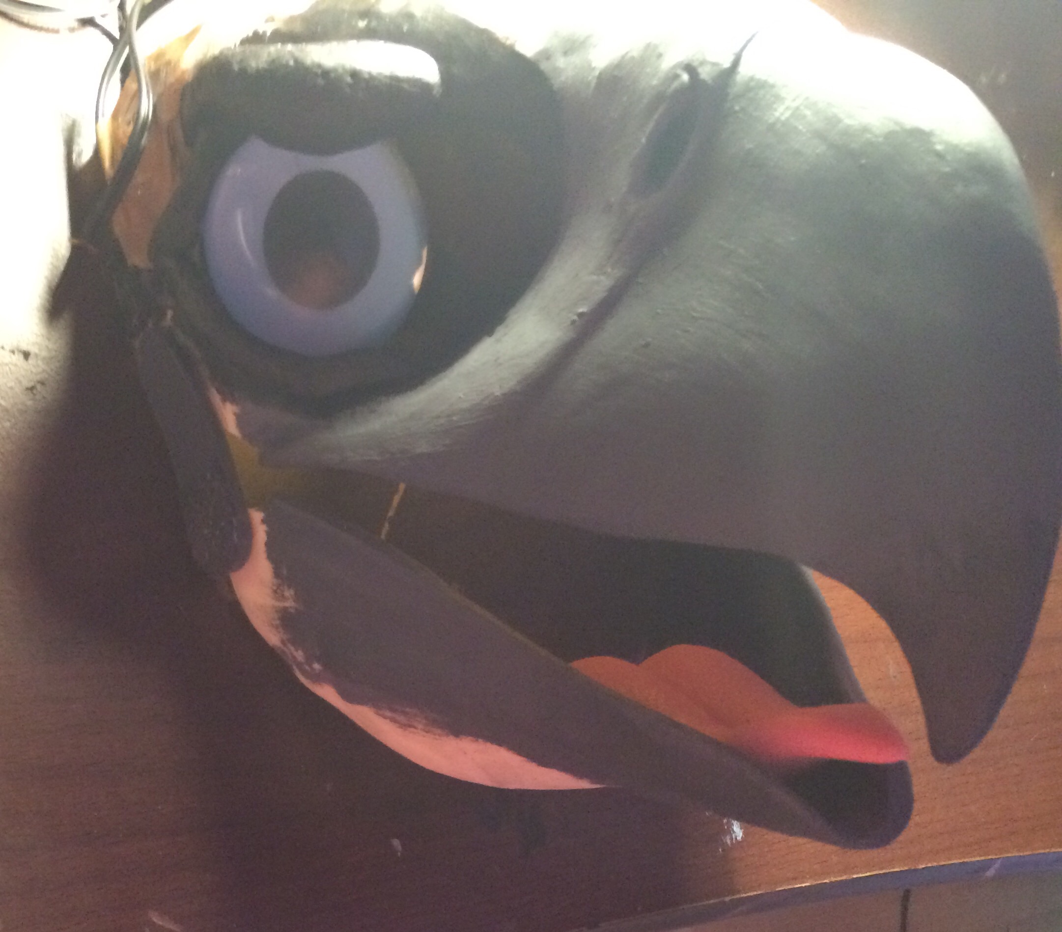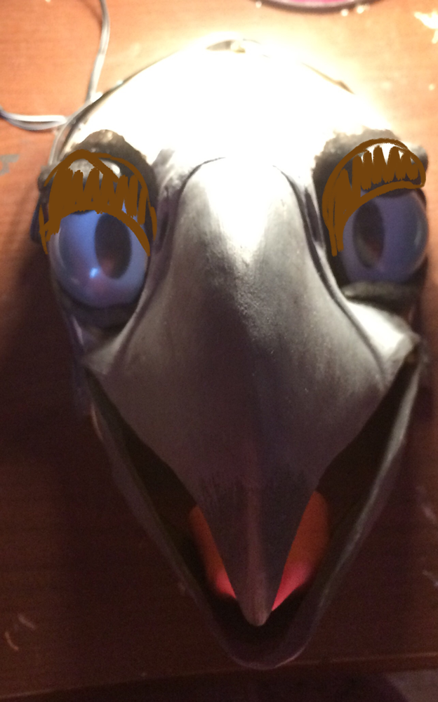 Sur cette vidéo (https://www.youtube.com/watch?v=kRQ5r5xWU2I), tu peux voir qu'il y a une paupière faite en milliput ou apoxie sculpt, et en plus une arcade sourcilière qui est recouverte de fourrure. La paupière cerne l'oeil et lui donne un aspect plus réaliste, plus propre tout en gardant l'oeil rond d'un rapace, l'arcade sourcilière lui donne l'expression. Tu peux faire les arcades sourcilières en milliput, veille juste à bien les discerner de la paupière. Ta photo de référence montre bien la différence aussi :)