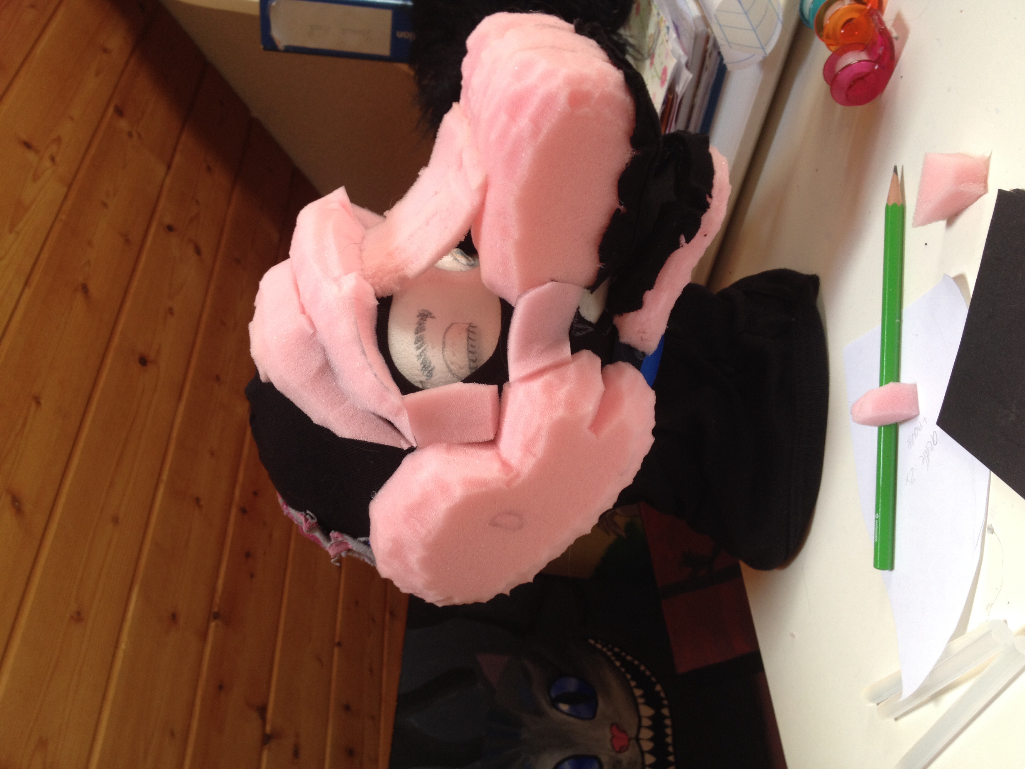 En fait il faut penser que quand tu vas ajouter la fourrure, l'épaisseur de poils fait tout va rendre plus épais que sur ta structure en mousse. Même avec les poils tondus. Du coup à l'heure actuelle si ta truffe a l'air "ok, limite trop petite" par rapport à ta base en mousse, elle rendra vraiment plus petite avec la fourrure en plus.
