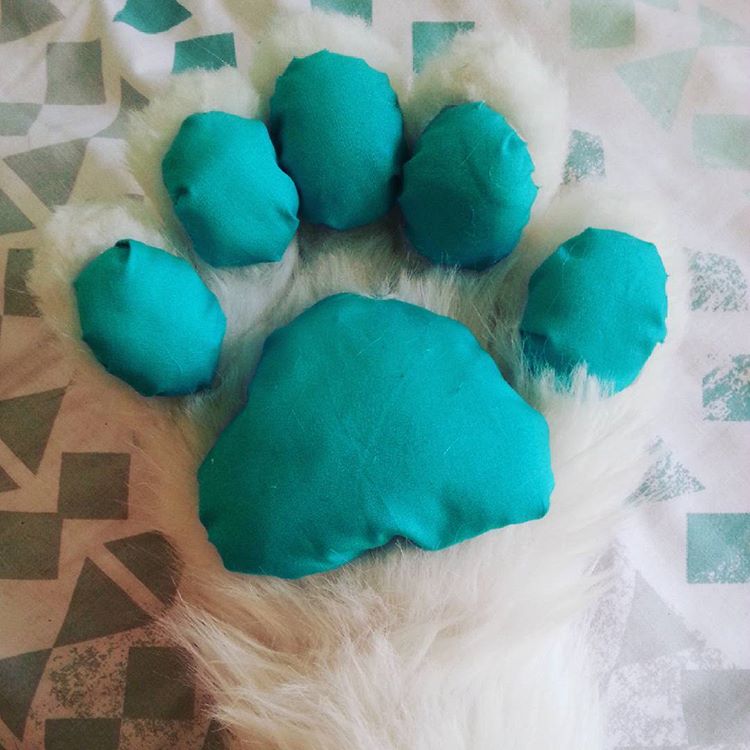 Bon, j'ai fait mes handpaws, à la bonne taille, ils sont ultra confortables, j'ai fait les coussinets avec du tissu et du rembourrage, il y a quelques plis que je n'ai pas pu éviter mais je trouve que ça choque pas :V J'ai eu quelques problèmes de coutures que j'ai pu régler, rien de bien important