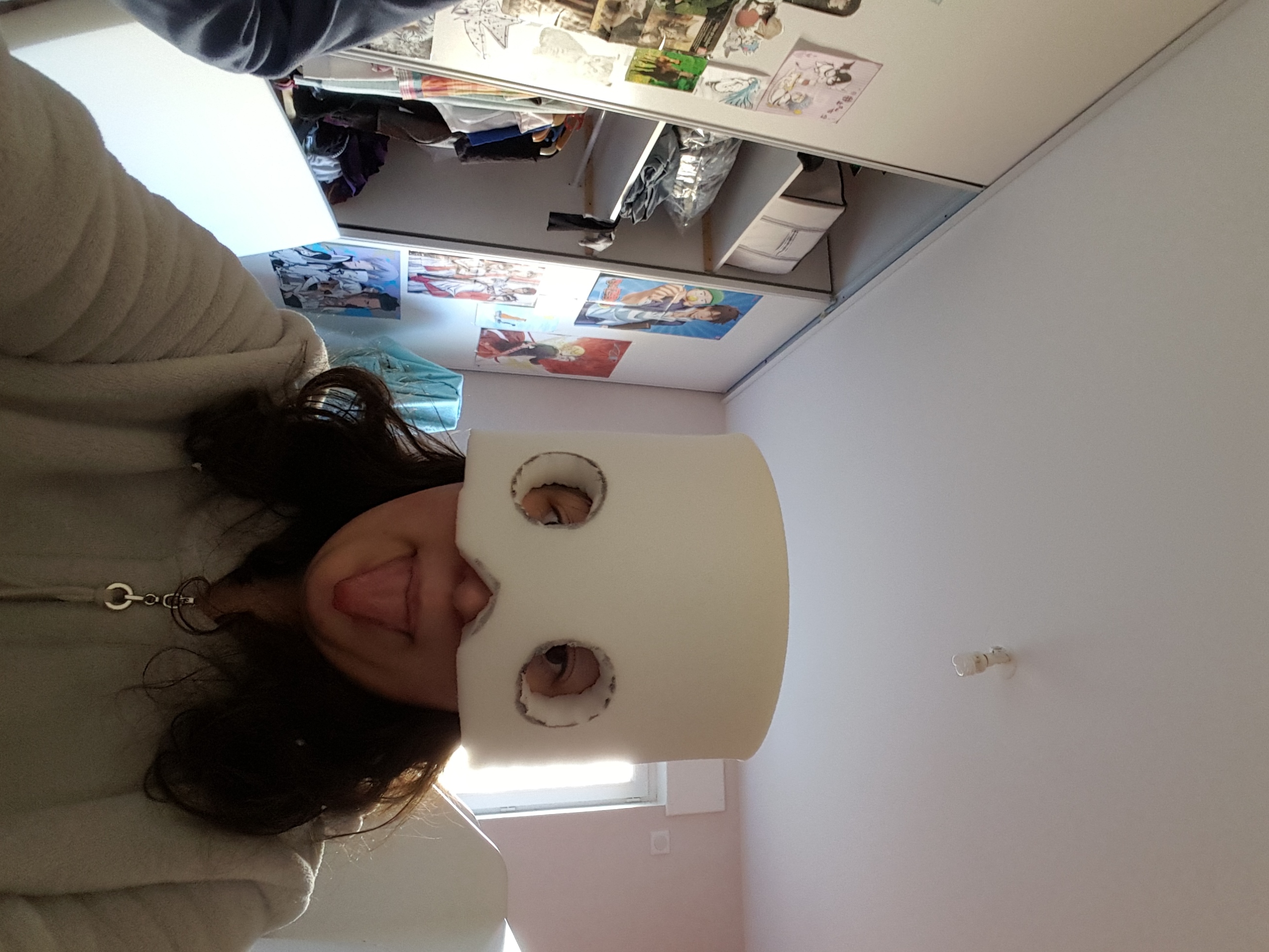 Coucou... conclusion de la journée pour l'instant c'est que je n'ai fait la mousse que pour le tour horizontal de ma tête. J'ai fait les trous pour les yeux. Fichier(s) joint(s):