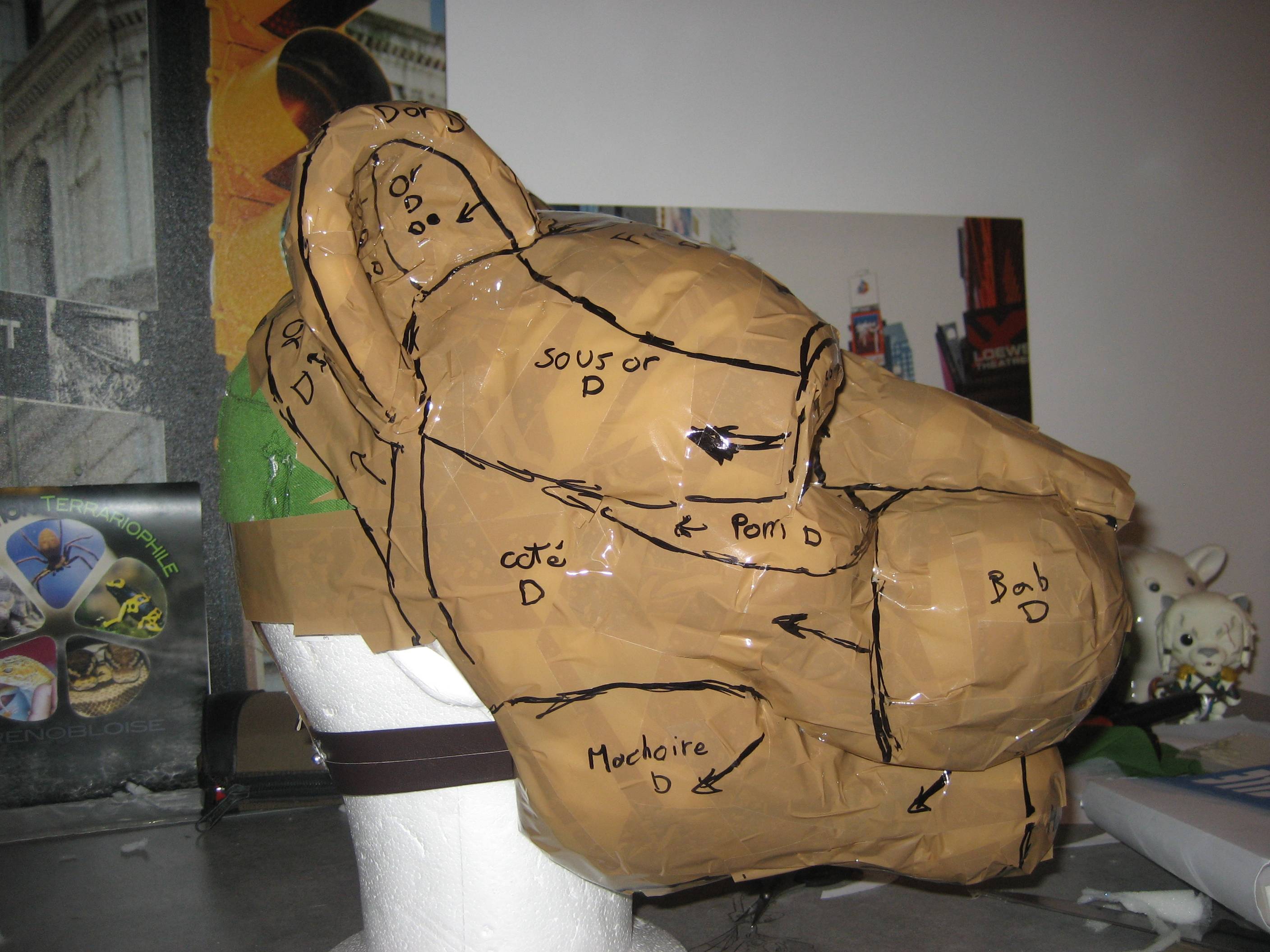 Il faut juste que je rase encore un peu la main gauche, que je rajoute la couleur (prions pour que la bombe de peinture acrylique ne détruise pas tout) et les griffes.