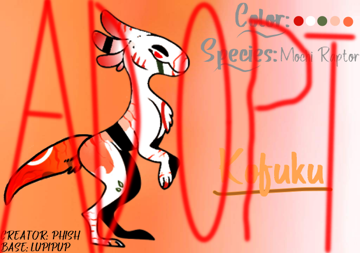 Je met à adopter Goldy un Mochi Raptor Femelle. Faite par moi (Phish) sur la base de LUPIPUP