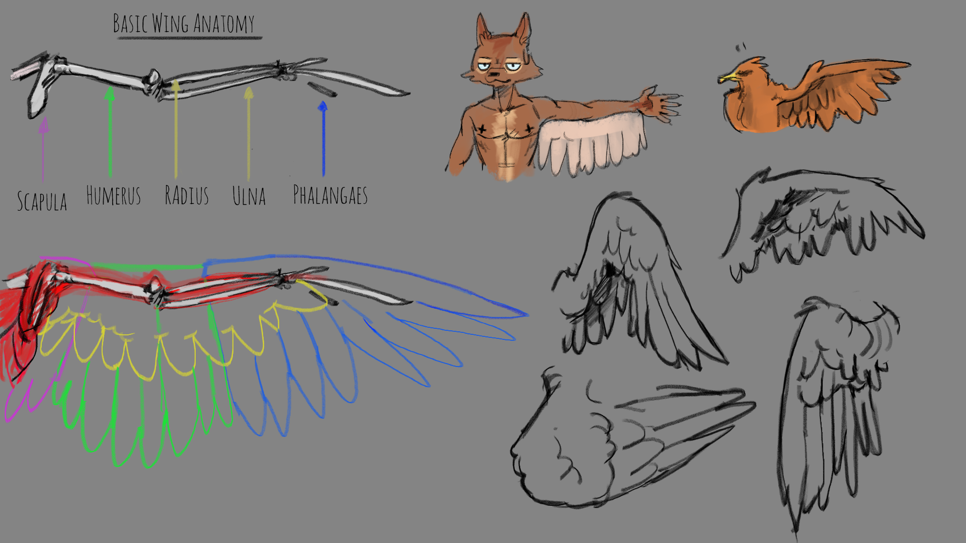 Compte tu compléter ce petit tuto (forme dépendant de l'espèce, plume, aile non à plumes...)? Et en à tu fait d'autre des petit tuto dessin comme celui ci?